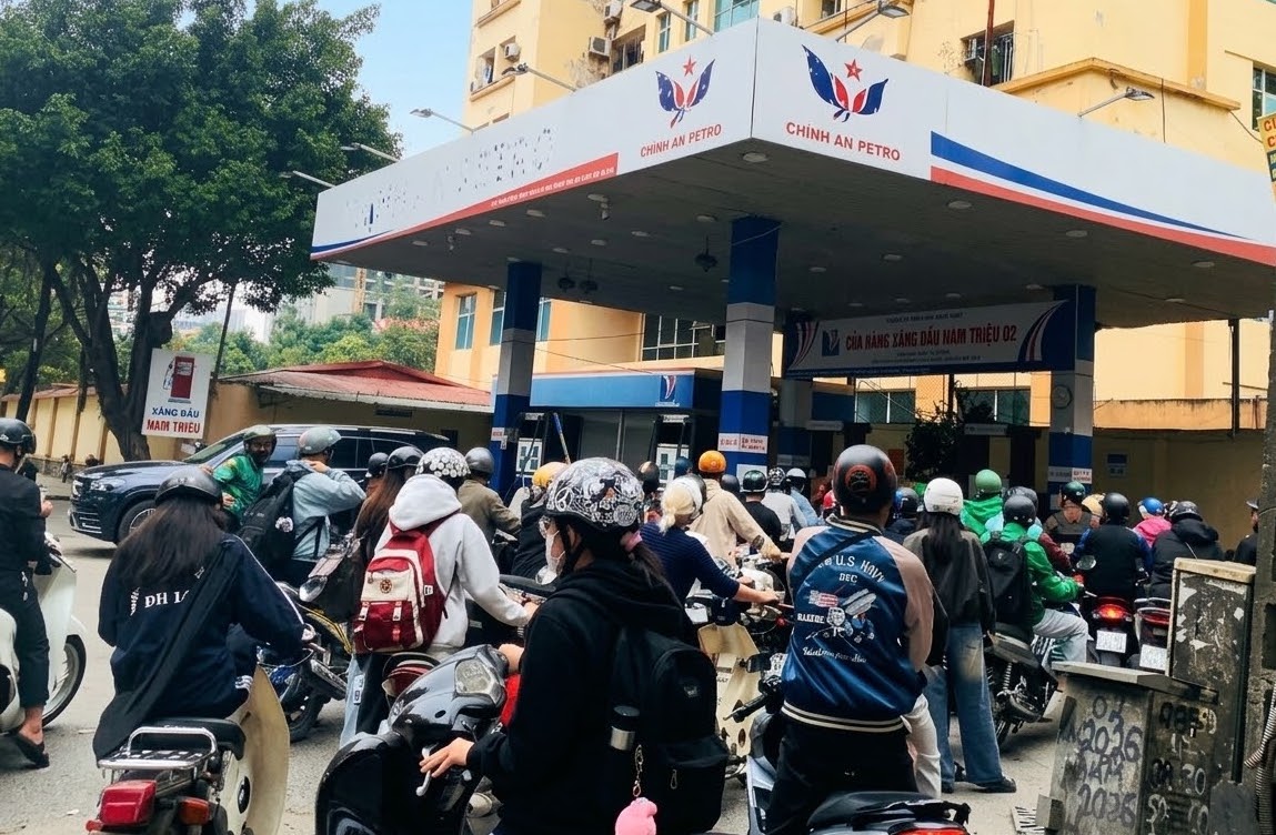Người dân chờ đến lượt đổ xăng trưa 7-3. Ảnh: AH