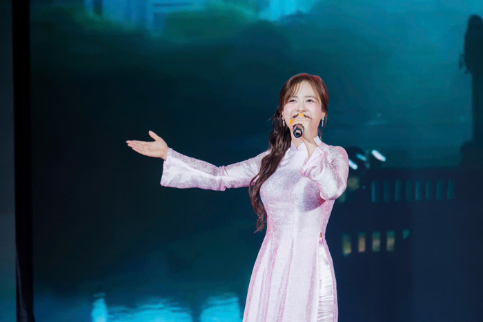 Giữa khán phòng lặng im, giọng ca nội lực của Dương Hoàng Yến cất lên, vang vọng và đầy xúc cảm. Không cần nhạc nền, từng câu hát của cô vẫn khiến người nghe nổi da gà, từng chữ như chạm vào trái tim khán giả. Cả không gian dường như chỉ còn lại tiếng hát ngân dài của nữ ca sĩ và ánh đèn flash từ hàng trăm chiếc điện thoại đồng loạt bật sáng, tạo nên một khung cảnh vừa thiêng liêng vừa tự hào, đúng như tinh thần của ca khúc.