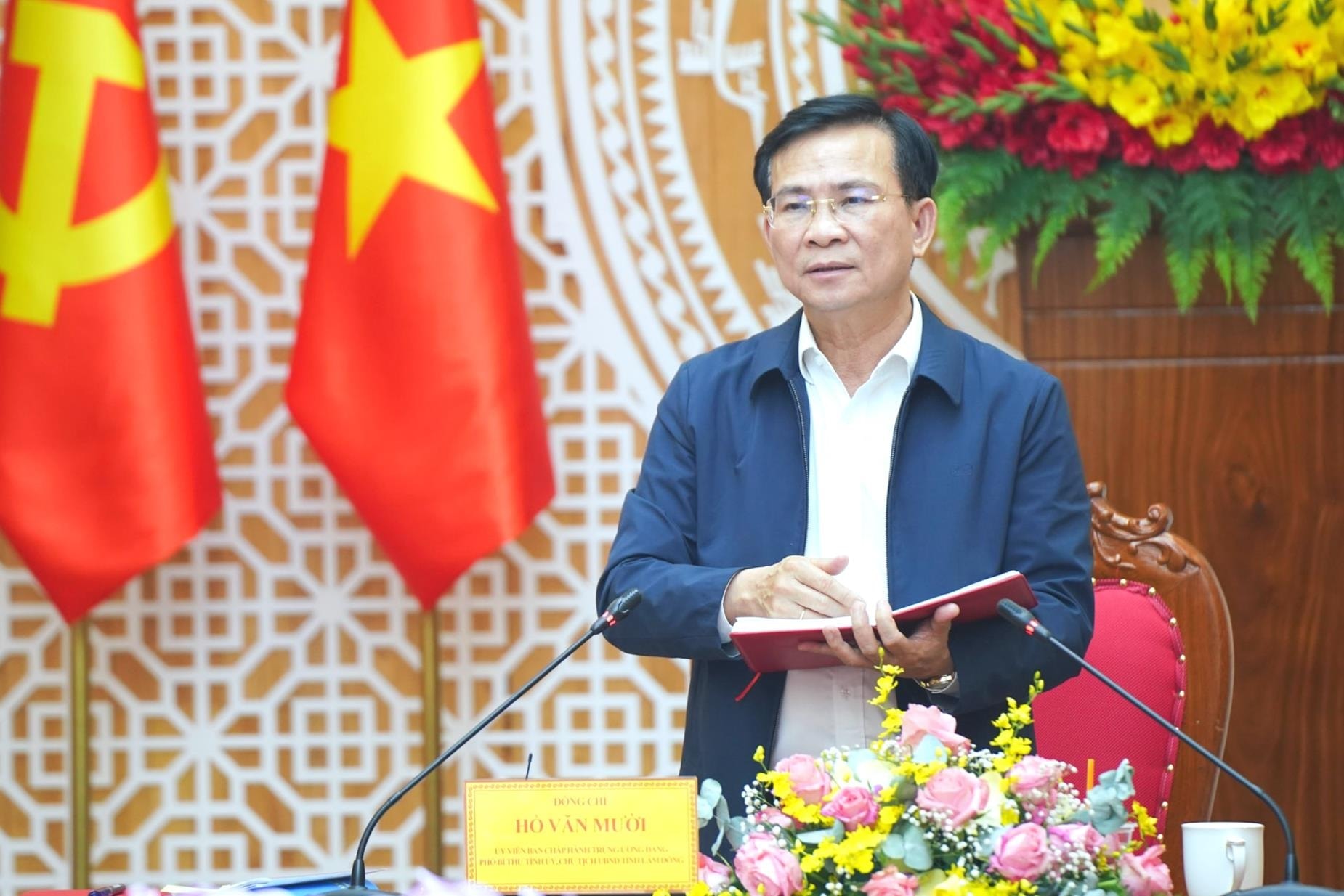 Chủ tịch UBND tỉnh Lâm Đồng Hồ Văn Mười chỉ đạo tại một trong những cuộc họp tìm giải pháp tăng trưởng GRDP “2 con số. Ảnh tư liệu