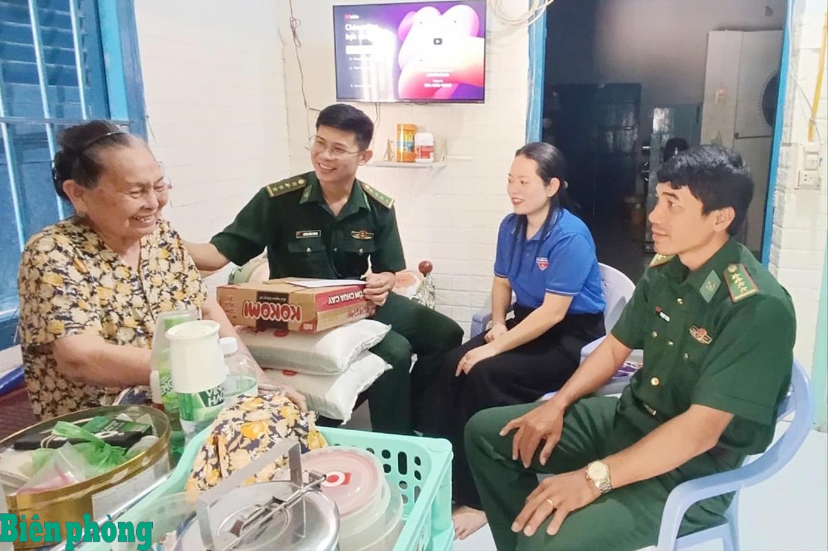 Cán bộ, chiến sĩ Đồn Biên phòng Hòa Minh phối hợp với Đoàn Thanh niên địa phương thăm hỏi, động viên bà con nhân dân có hoàn cảnh khó khăn trên địa bàn. Ảnh: Duy Thắng