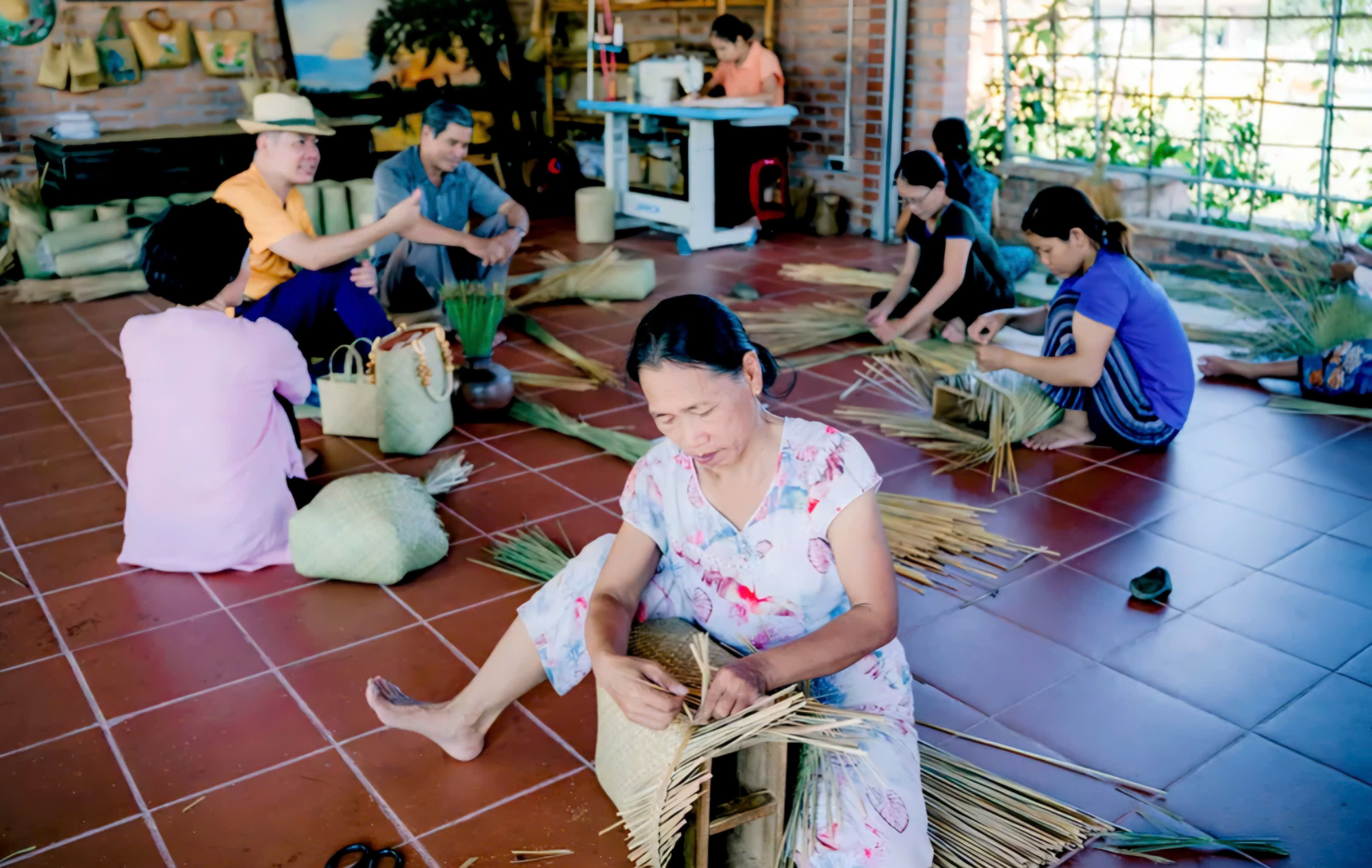 Những người phụ nữ đan đệm, chẹ (dùng cho trẻ sơ sinh lót nằm) truyền thống sau khi tham gia các lớp học nâng cao tay nghề đã thực hiện được các sản phẩm thân thiện môi trường, được du khách trong và ngoài nước ưa chuộng.