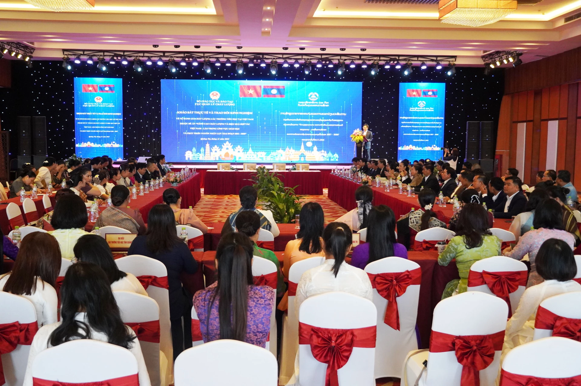 Tham dự hội thảo có đại diện Cục Quản lý chất lượng, Bộ GD-ĐT Việt Nam và Cục Bảo đảm chất lượng, Bộ Giáo dục và Thể thao Lào; đông đảo cán bộ quản lý giáo dục và giáo viên hai nước. Hội thảo được kết nối trực tuyến với điểm cầu Sở GD-ĐT TP. Huế.