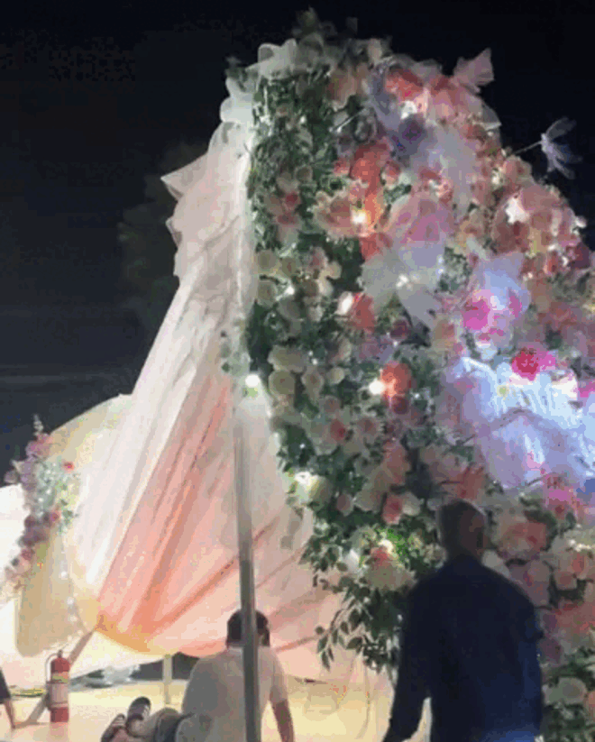 Đèn lồng khổng lồ hình bó hoa gây sốt mạng xã hội. Ảnh cắt từ clip. (Nguồn: @quanvu_1206)