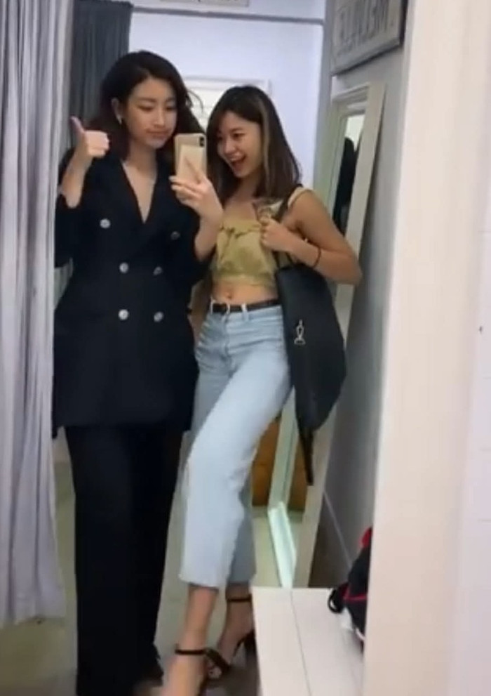 Đỗ Mỹ Linh cùng bạn chụp hình bằng chiếc điện thoại 10 triệu đồng. Ảnh chụp màn hình