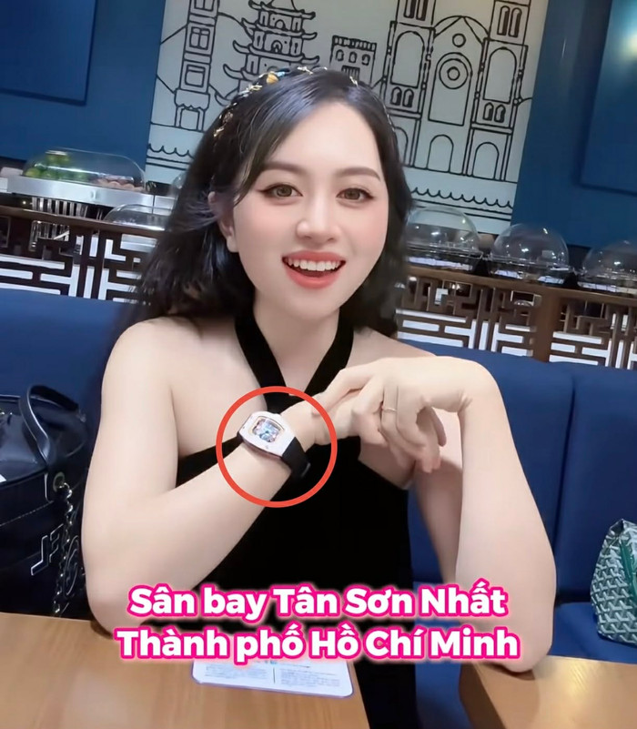 Chiếc đồng hồ nổi bật trong outfit của con dâu bà chủ Thẩm mỹ viện Mailisa. Ảnh chụp màn hình