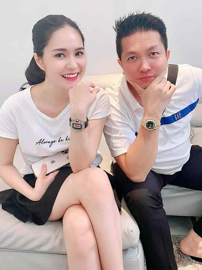 Chồng Đoàn Di Băng "khoe" khéo chiếc đồng hồ hơn 1 tỷ cùng vợ.