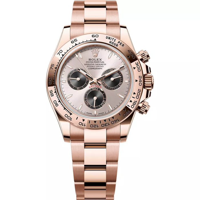 Rolex Cosmograph Daytona 126505 mặt Sundust 40mm nổi bật với công năng chronograph đa dạng, được thiết kế để đo thời gian chính xác trong các hoạt động cường độ cao. Vỏ Oyster monobloc đường kính 40mm làm từ 18 ct Everose gold (hợp kim vàng hồng) độc quyền Rolex đúc tại xưởng riêng từ năm 2005, mang lại độ bền chống ăn mòn và giữ màu sắc lâu dài nhờ công nghệ luyện kim tiên tiến.