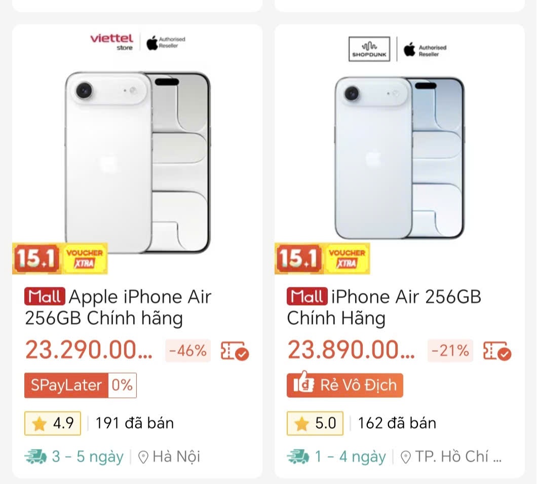 iPhone Air được bán quanh mốc 23 triệu đồng trên các sàn TMĐT.