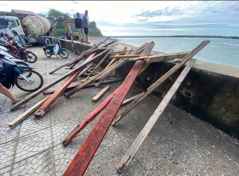 Vài cây gỗ còn lại của tàu VT 0035.