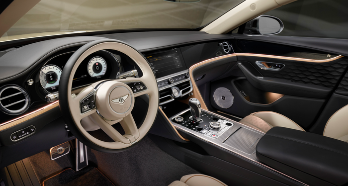 Nội thất hiện đại bên trong chiếc xe Bentley Flying Spur. (Ảnh: Bentley)