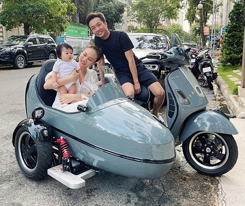 Cường Đô La mạnh tay chi tiền mua chiếc xe máy 3 bánh chở vợ con đi chơi. Ảnh: FBNV
