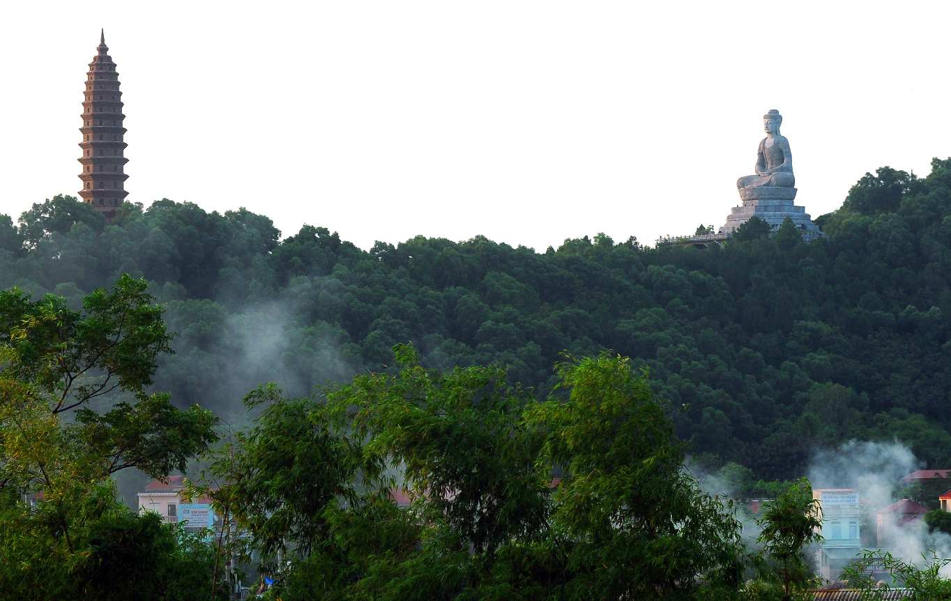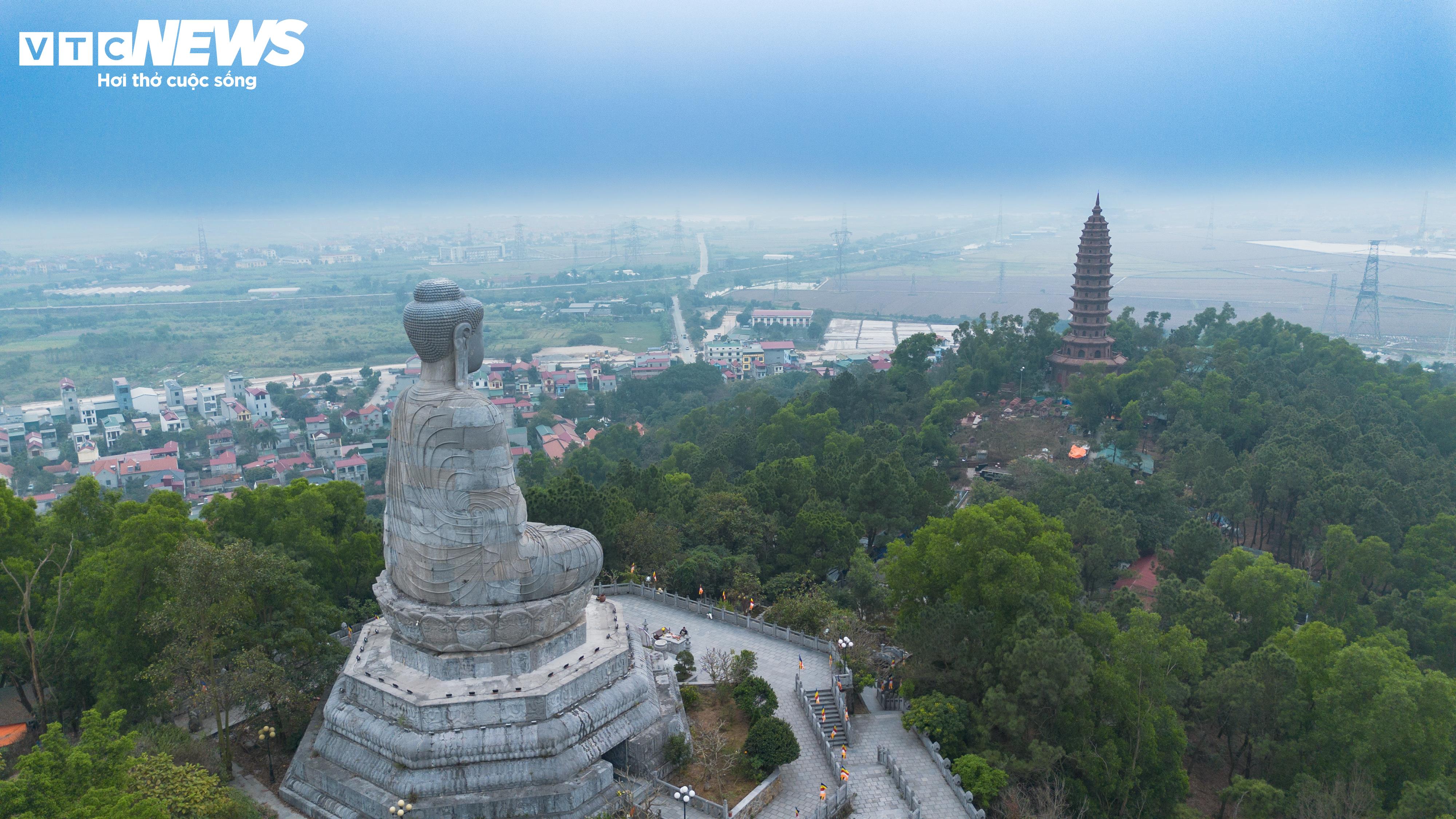 Đến chùa Phật Tích, từ xa du khách đã có thể nhìn thấy pho tượng Phật khổng lồ cao sừng sững.