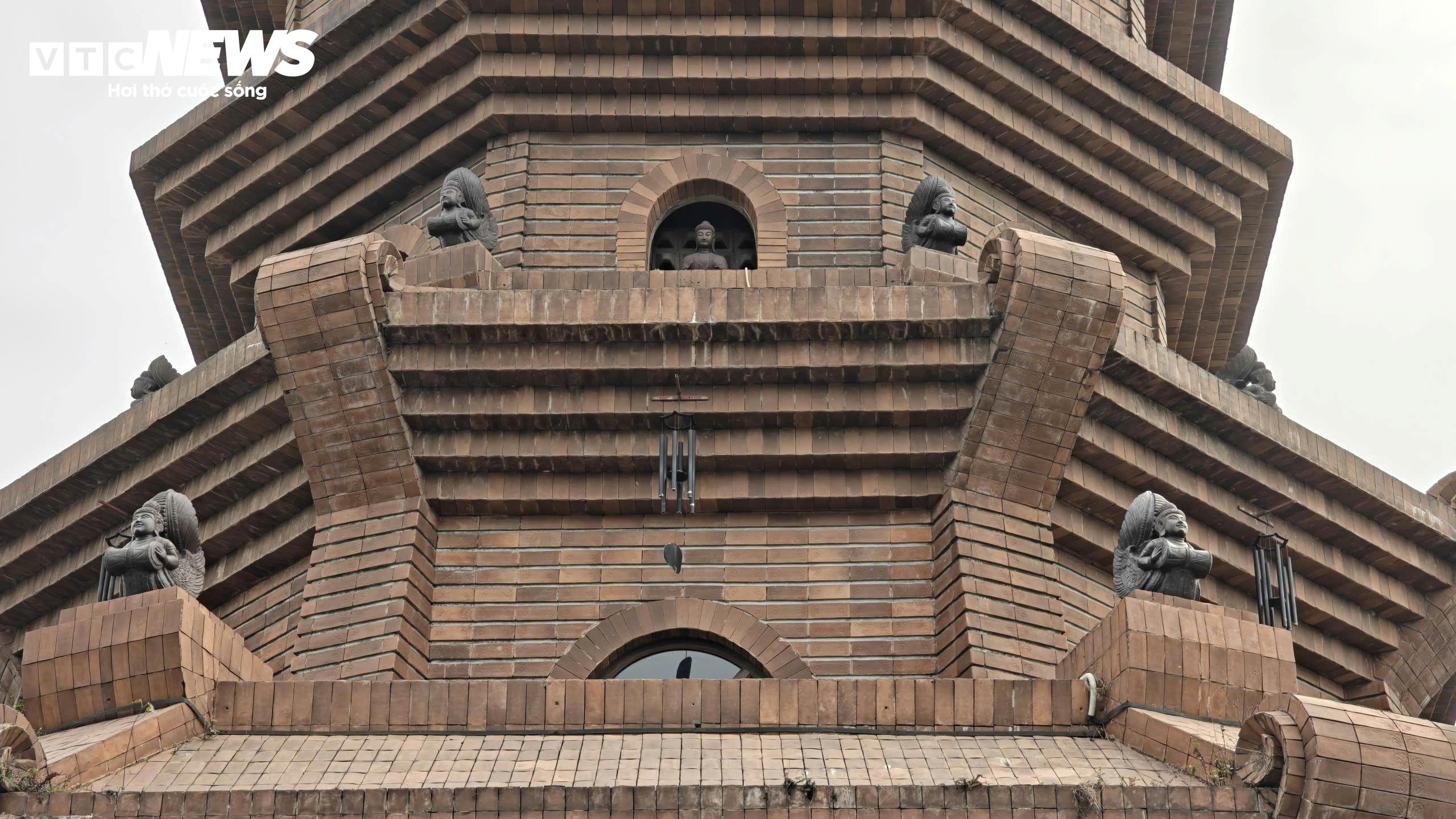 Mỗi tầng tháp có 8 mặt, chính giữa mỗi mặt có trổ ô cửa vòm. Trong mỗi ô cửa bài trí một tượng Phật, tạo hình giống với tượng Phật cổ được phát hiện ở tòa bảo tháp xưa.