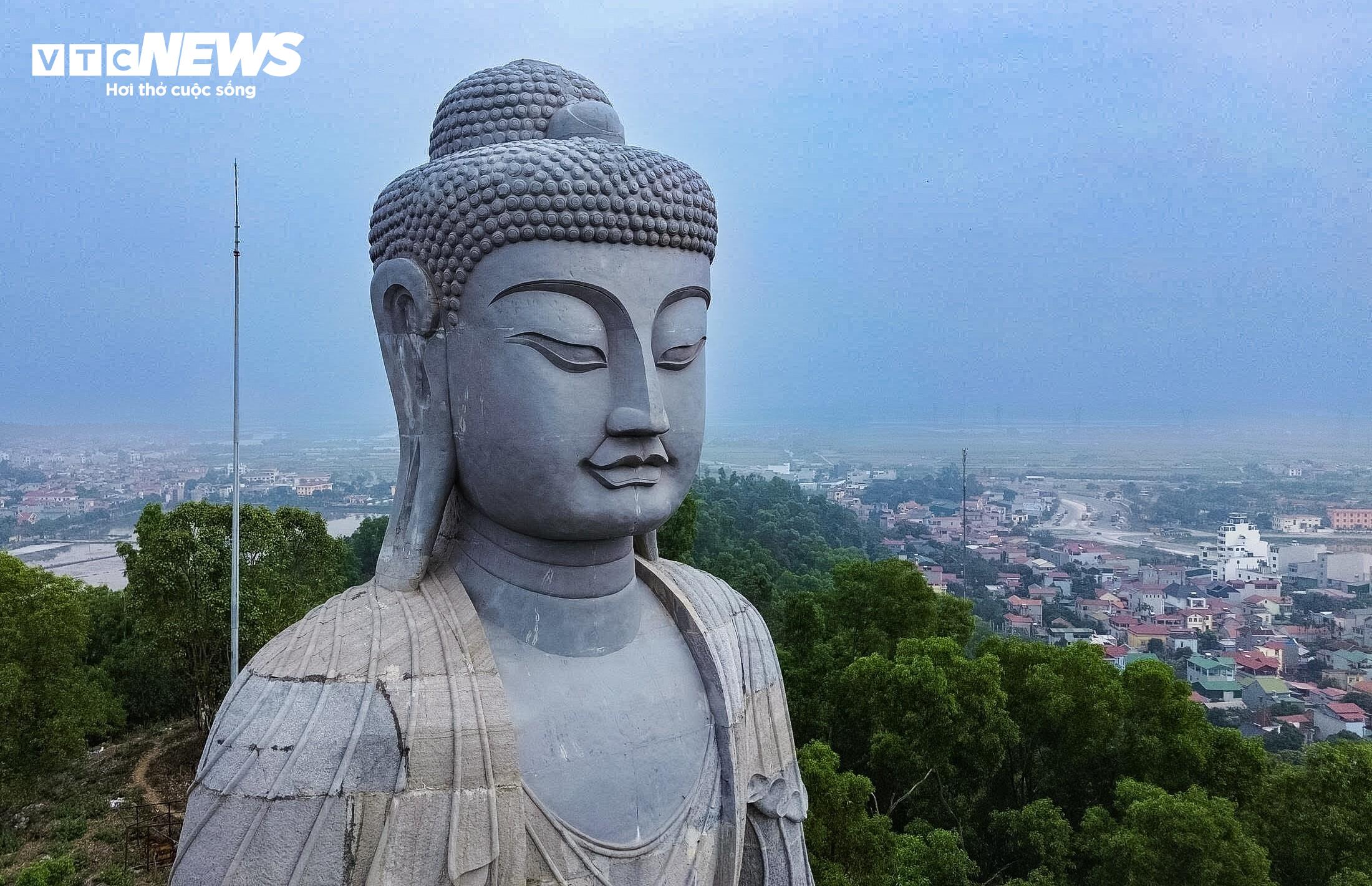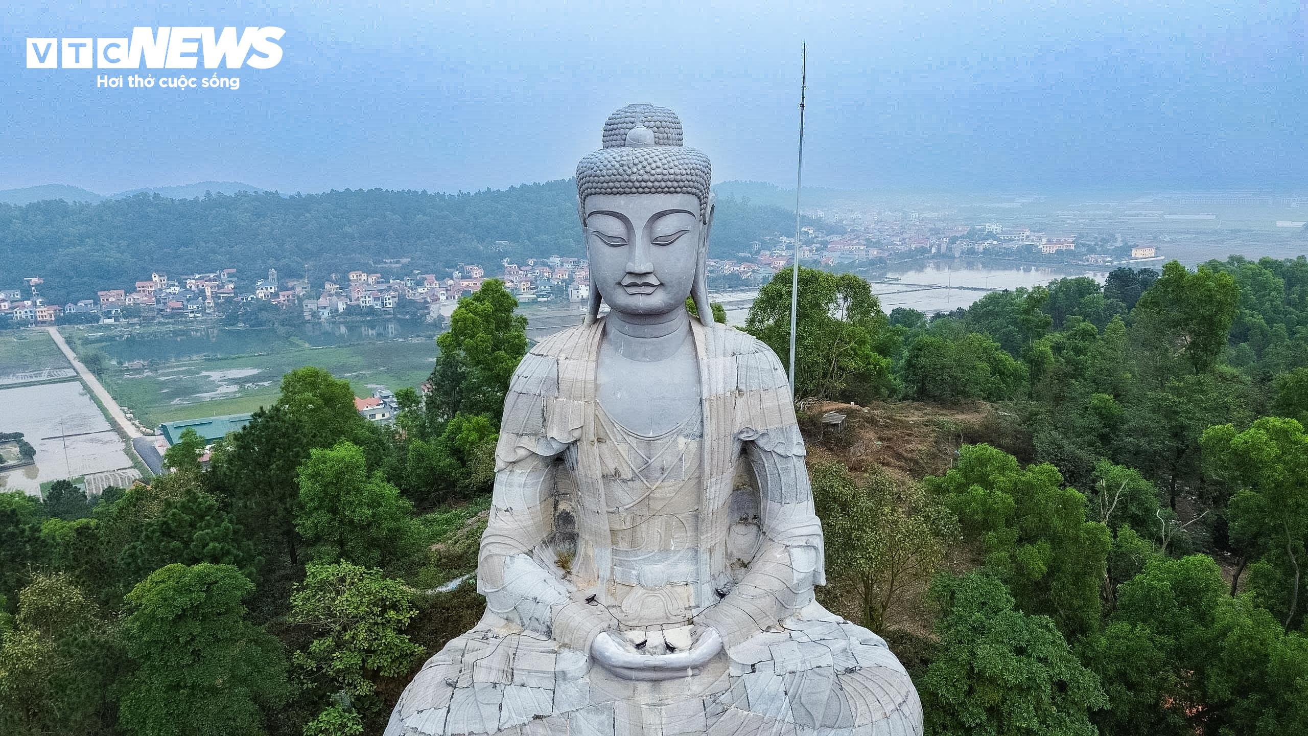 Với kích thước đồ sộ, pho tượng toát lên vẻ uy nghi giữa núi rừng trầm mặc.