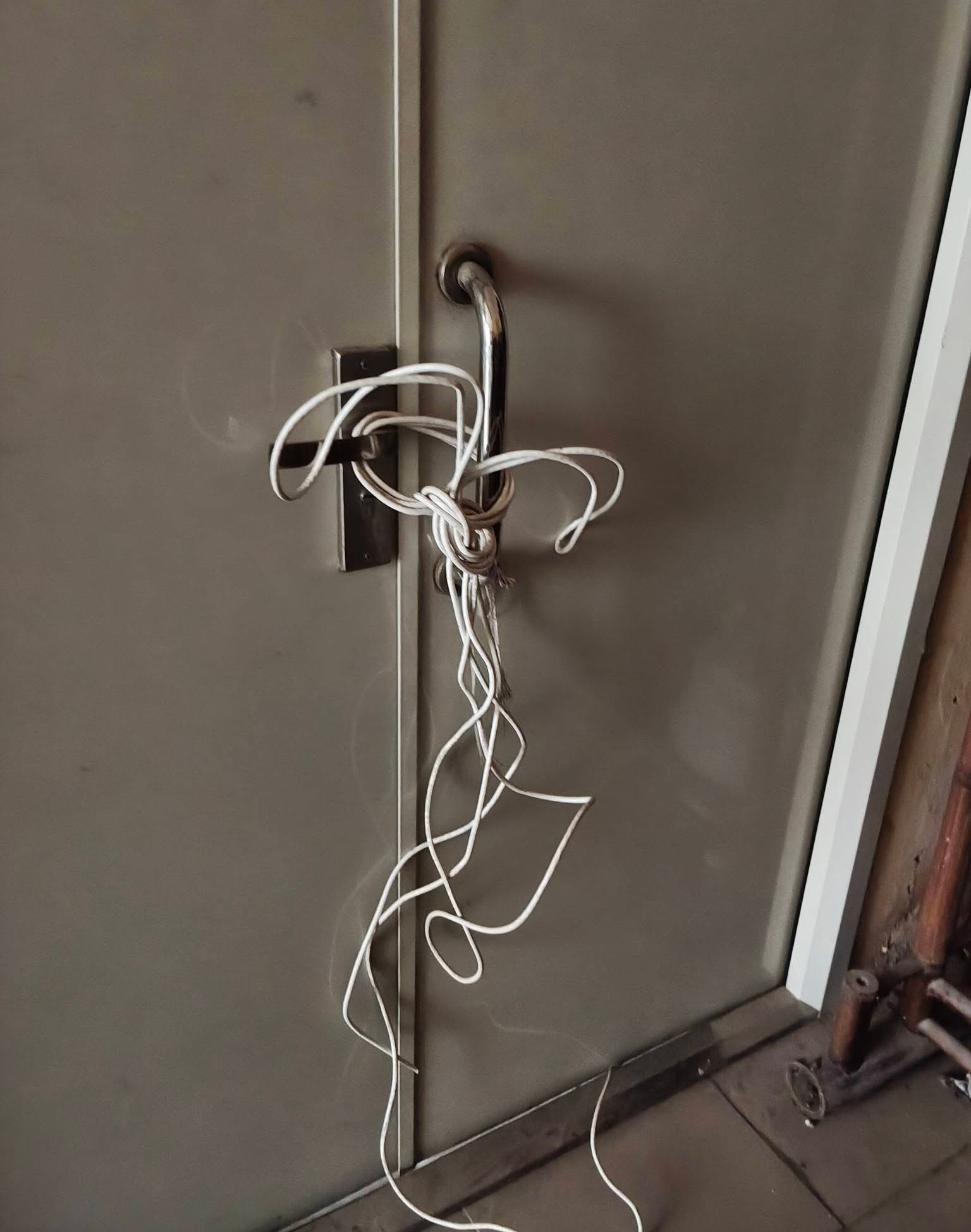 Nhiều người đã có hành vi buộc cửa thoát hiểm do họ để đồ bên trong cầu thang. ảnh: DN