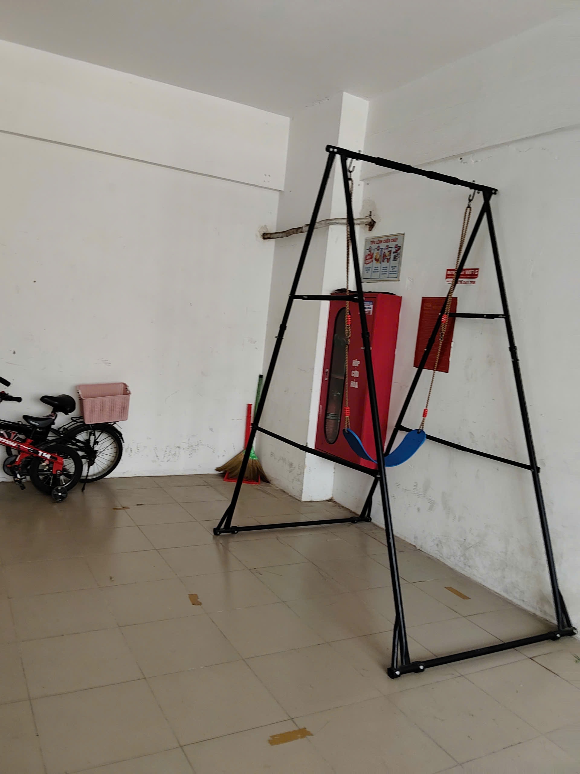 Đáng lo ngại, một số lối thoát hiểm và cầu thang bộ bị che chắn, buộc dây hoặc đặt đồ đạc cồng kềnh, làm thu hẹp không gian thoát nạn khi xảy ra sự cố cháy nổ. “Gia đình tôi mới chuyển đến đây, luôn mong muốn có môi trường sống an toàn, văn minh. Nhưng mỗi khi chúng tôi bước ra khỏi cửa căn hộ là thấy đồ đạc ngổn ngang, rất lo lắng nếu xảy ra cháy nổ”, chị Nguyễn Kim, một cư dân chung cư A2, bày tỏ.