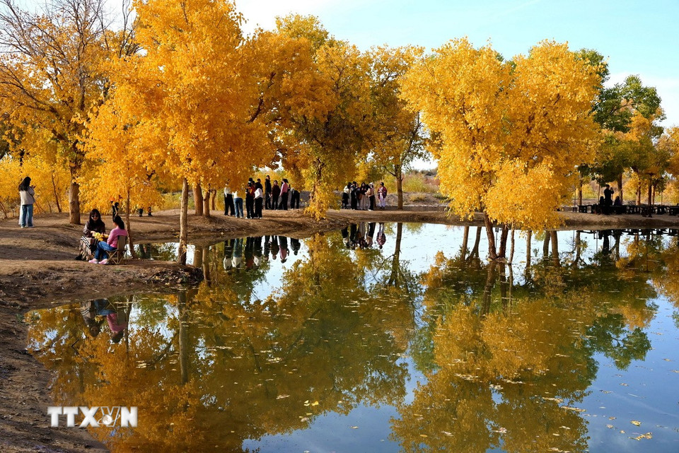 Mùa thu đang nhẹ nhàng vẽ bức tranh quyến rũ, thơ mộng với gam màu đỏ vàng chủ đạo cho cảnh sắc thiên nhiên tại nhiều quốc gia trên thế giới. Trong ảnh: Cảnh đẹp mùa thu tại khu tự trị Nội Mông, Trung Quốc. (Ảnh: THX/TTXVN)