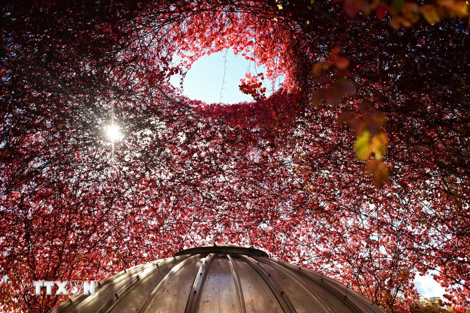 Lá cây nhuộm sắc đỏ tại Warsaw, Ba Lan. (Ảnh: THX/TTXVN)