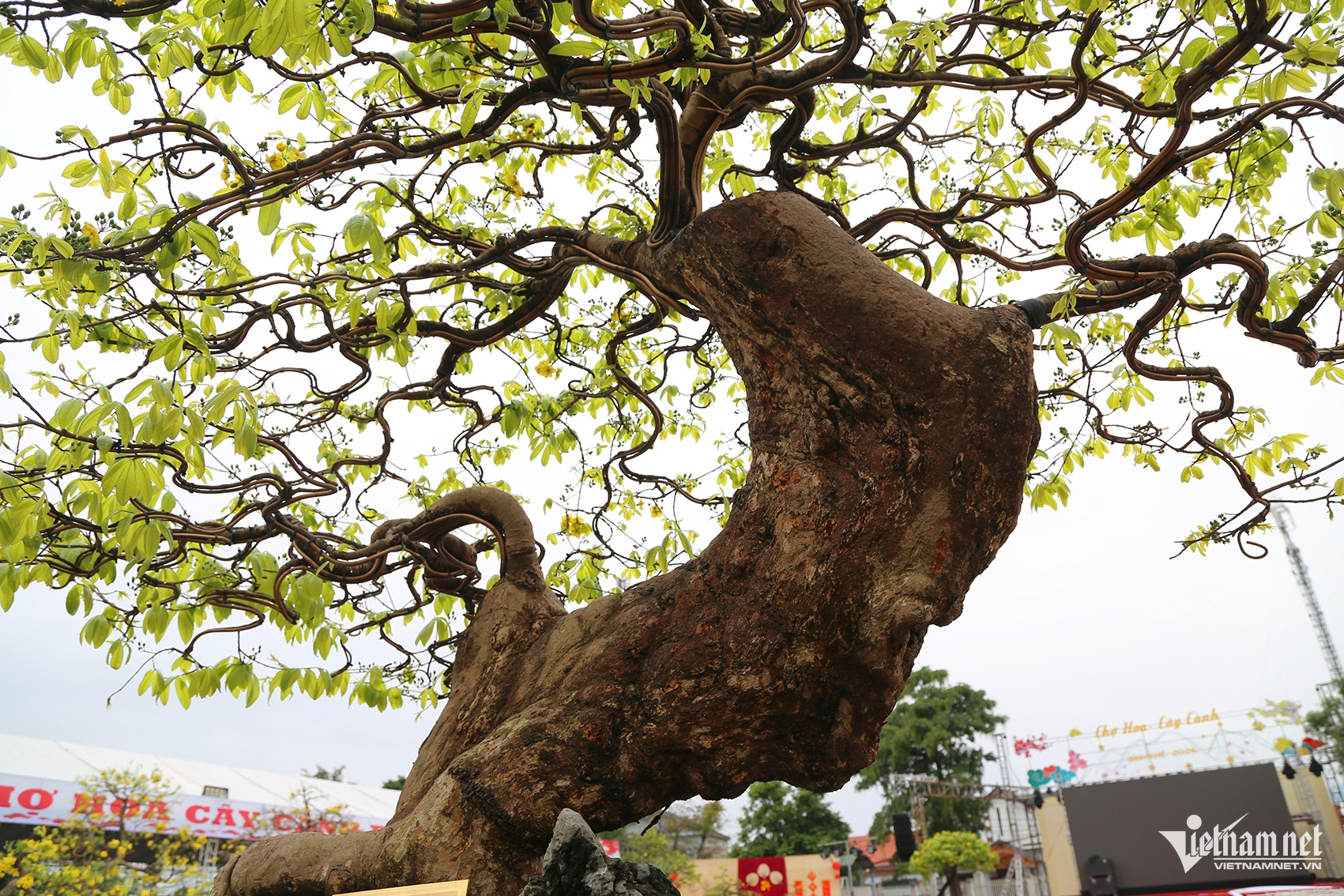 Siêu phẩm “Thiện Phúc Yên Tử" với hình dáng uốn lượn, gốc to đặt chính giữa hội chợ hoa và được chào giá hơn 1 tỷ. Ảnh: Phạm Công