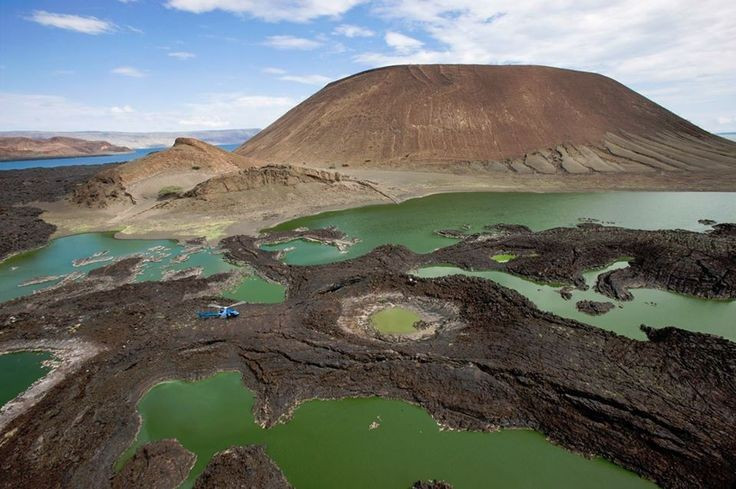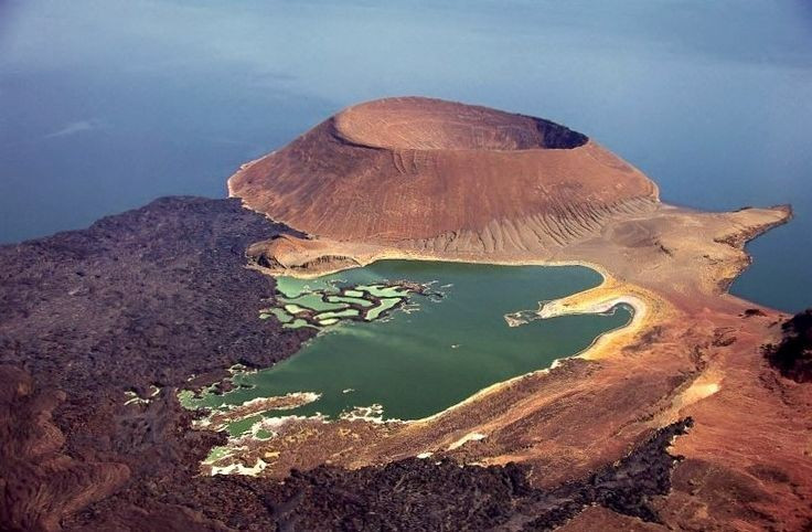 Hồ kiềm lớn nhất thế giới. Hồ Turkana là hồ nước kiềm lớn nhất hành tinh, với màu xanh ngọc đặc trưng do khoáng chất tự nhiên. Ảnh: Pinterest.