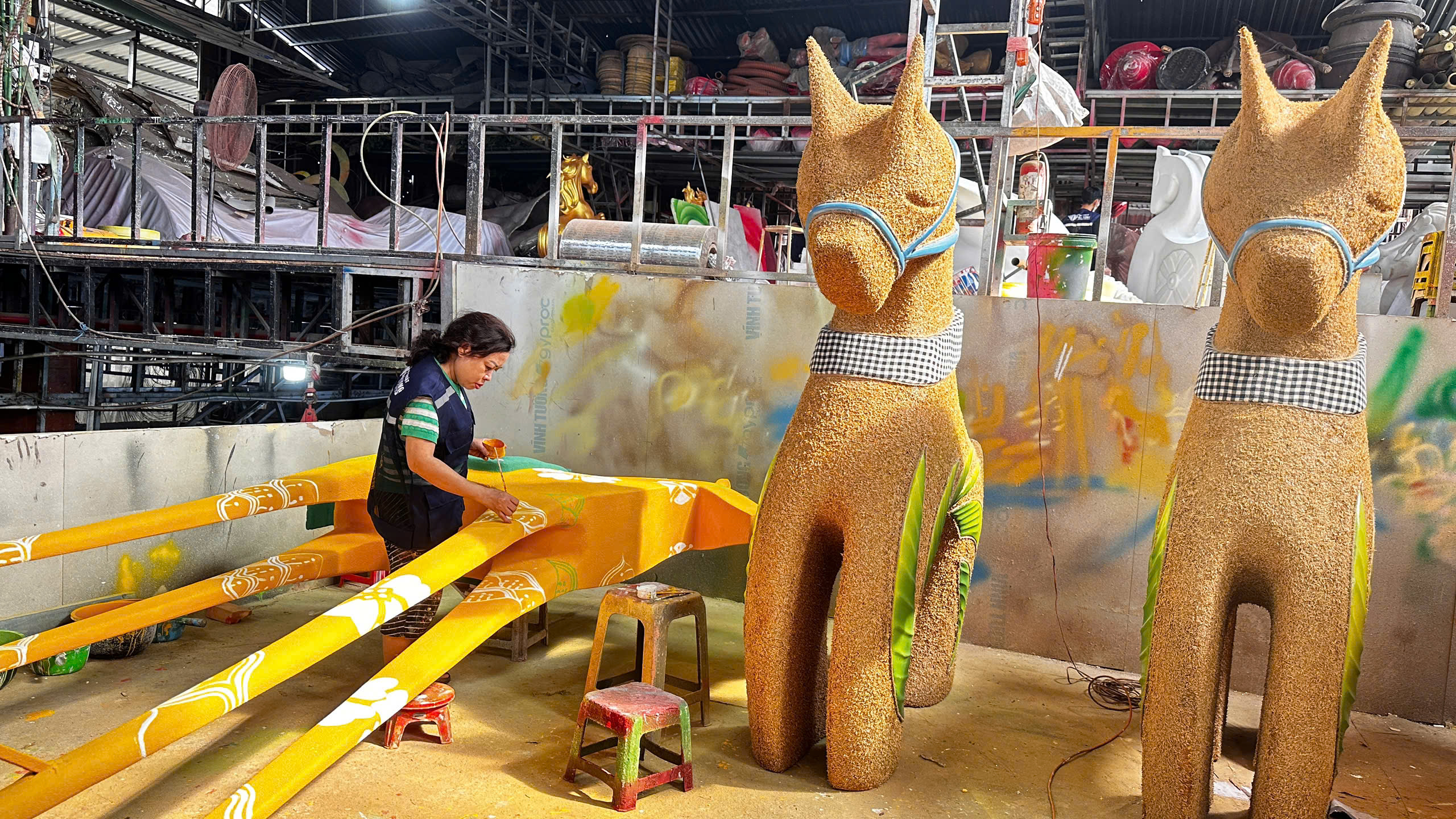 Ngày 29/1, PV Người Đưa Tin có mặt tại xưởng của nghệ nhân Đinh Văn Tòng, ghi nhận nhiều hình ảnh ấn tượng về những linh vật ngựa được trưng bày năm nay.