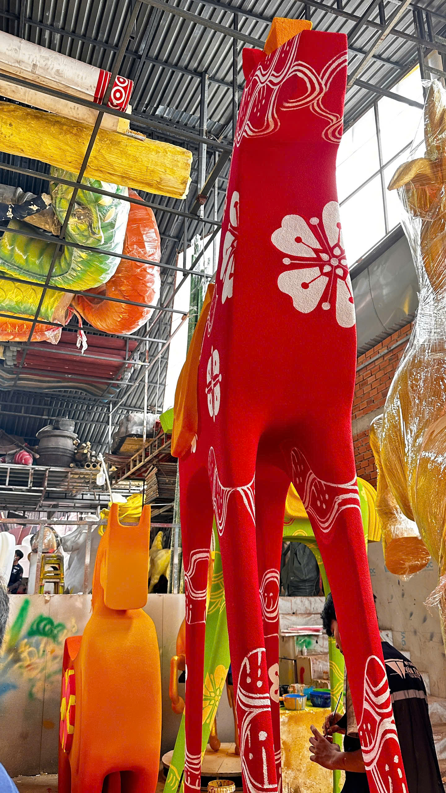 Những ngày cận Tết, nhiều công nhân, kỹ sư kỹ thuật tại xưởng Văn Tòng đang gấp rút làm việc liên tục để kịp tiến độ mà UBND Tp.HCM giao phó. Theo kế hoạch, trong vài ngày tới, toàn bộ linh vật sẽ được tháo rời, vận chuyển ra phố đi bộ Nguyễn Huệ để lắp ráp, thi công hoàn thiện Đường hoa Tết Bính Ngọ 2026 với chủ đề “Xuân hội tụ - Vững bước vươn mình”.