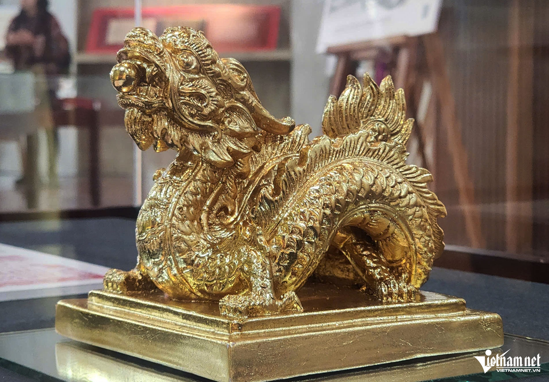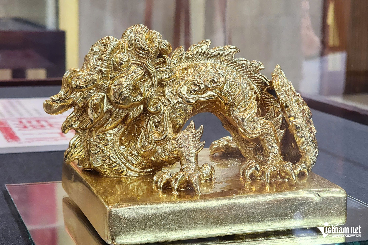 Ấn vàng "Chế Cáo Chi Bảo" đúc thời Hoàng đế Gia Long (1802-1820), dùng để đóng trên các tờ giấy huân giới, sắc, chiếu mệnh sai phái quan văn, võ cùng chiếu văn thăng giáng cấp bậc, răn dạy quan tướng...
