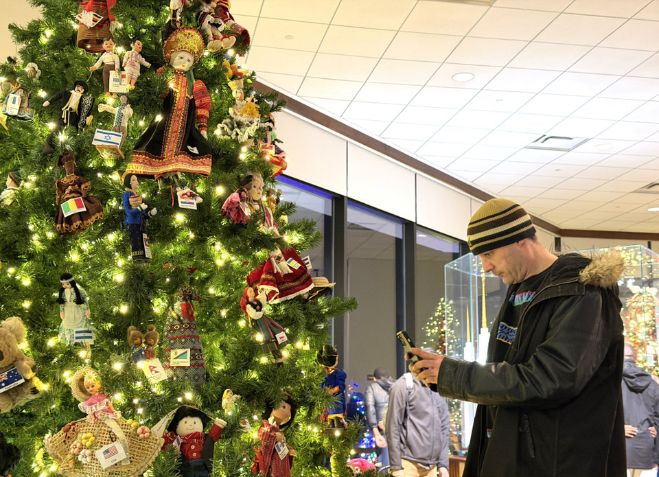 Một người dân chụp ảnh cây thông Noel. (Ảnh: Ngọc Quang/TTXVN)