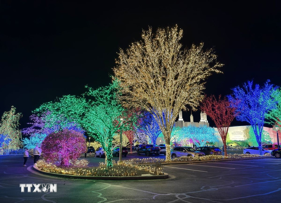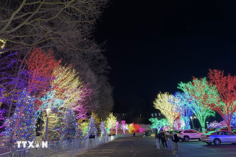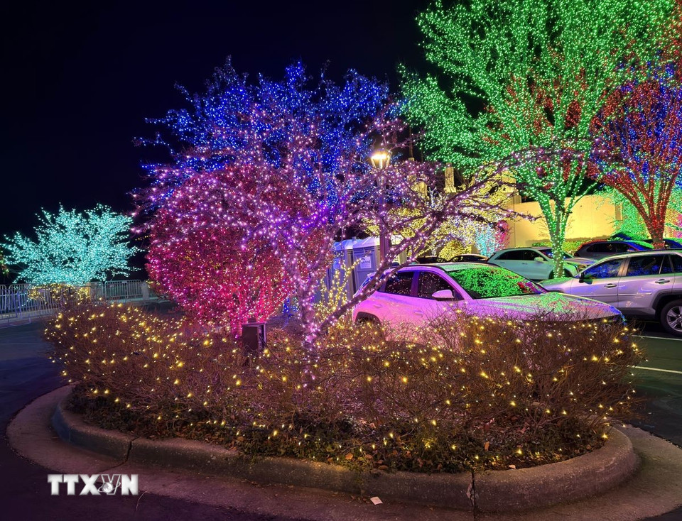 Cây cối được trang trí đèn rực rỡ chào đón mùa Giáng sinh tại bang Maryland. (Ảnh: Ngọc Quang/TTXVN)