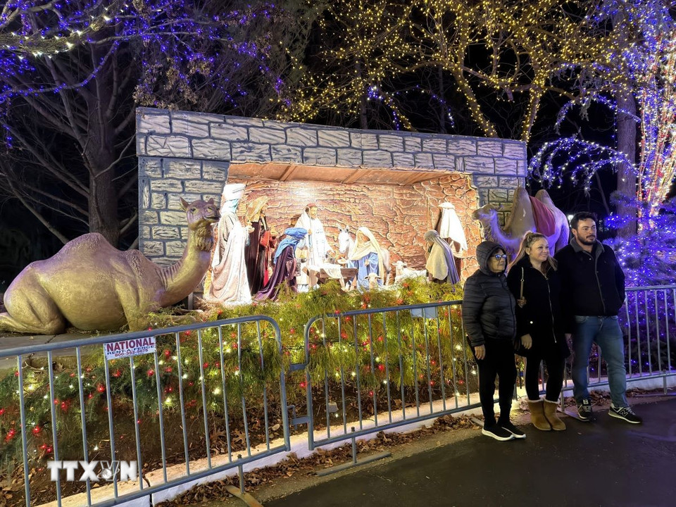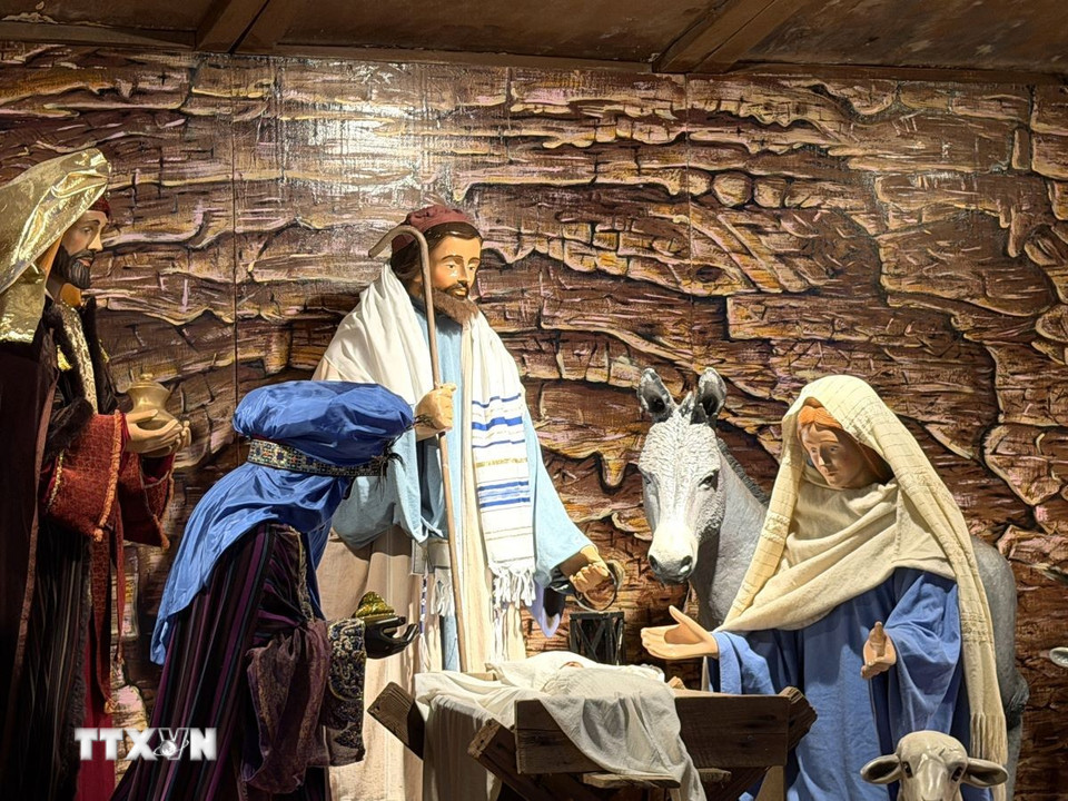 Trong khuôn viên, du khách có thể bắt gặp các mô hình tái hiện câu chuyện Chúa Giáng sinh. (Ảnh: Ngọc Quang/TTXVN)