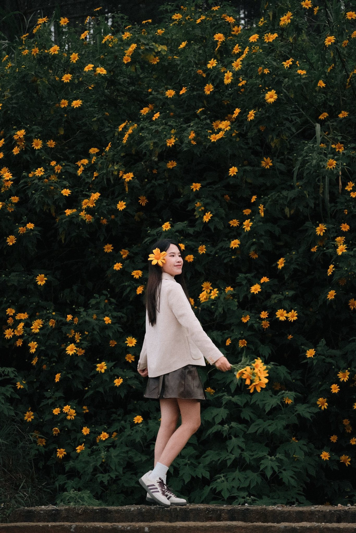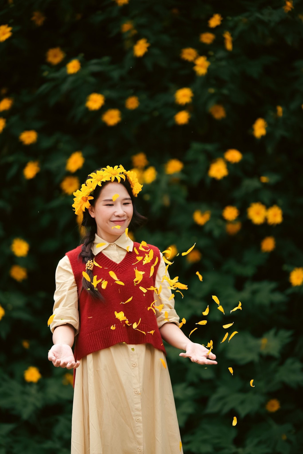 Thời điểm lý tưởng để chụp hoa là sáng từ 9–10 giờ hoặc chiều 3–5 giờ, khi ánh nắng dịu và sắc vàng rực rỡ nhất. Ảnh Diễm Quỳnh