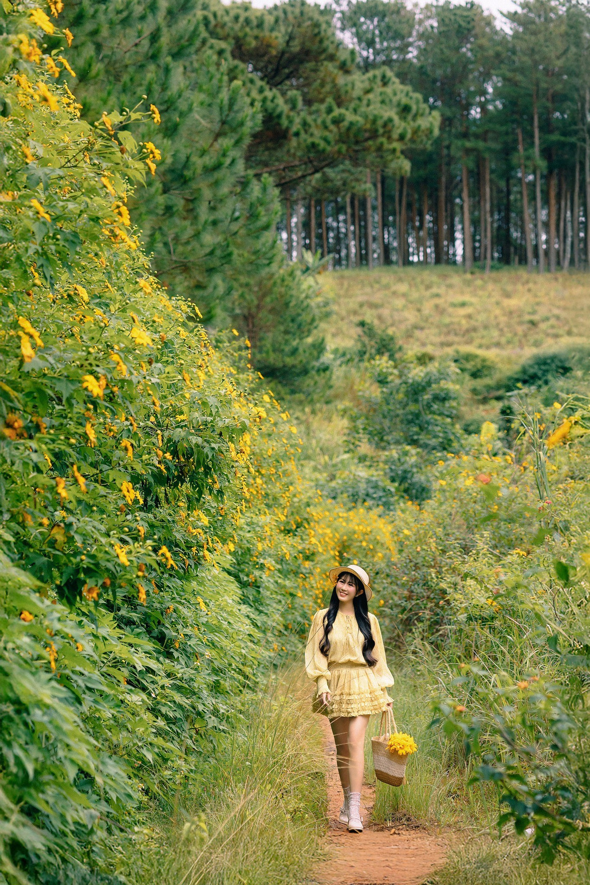 Vì là hoa dại mọc tự nhiên, dã quỳ tạo thành những hàng rào vàng óng uốn lượn theo sườn đồi, mang đến khung cảnh độc đáo, rất “Đà Lạt” Ảnh Diễm Quỳnh