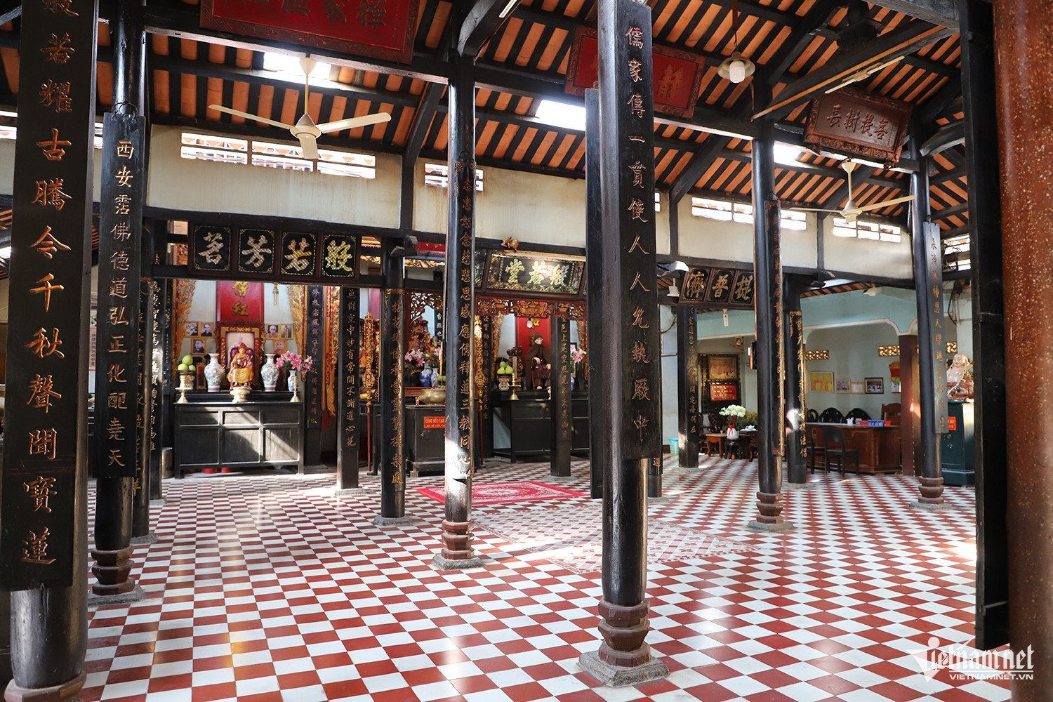 Nền chùa được lát gạch bông. Phía sau chánh điện là gian nhà thờ rộng rãi, thông thoáng. Hệ thống cột gỗ đã được trùng tu, gia cố bằng trụ bê tông nhằm đảm bảo độ bền vững cho công trình.