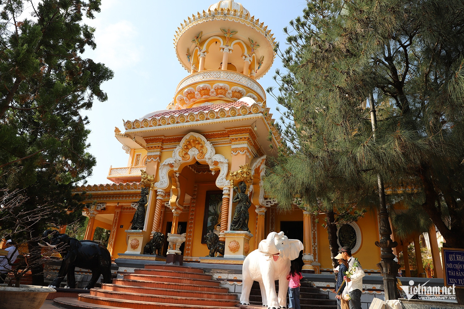 Chùa được xây dựng bằng các vật liệu bền chắc như gạch, ngói, xi măng. Ngay cổng tam quan là tượng Quan Âm Thị Kính. Bên trong là khoảng sân nhỏ với cột cờ cao 16m, hai bên đặt tượng hai chú voi: một voi trắng 6 ngà và một voi đen 2 ngà, tạo điểm nhấn độc đáo cho không gian.