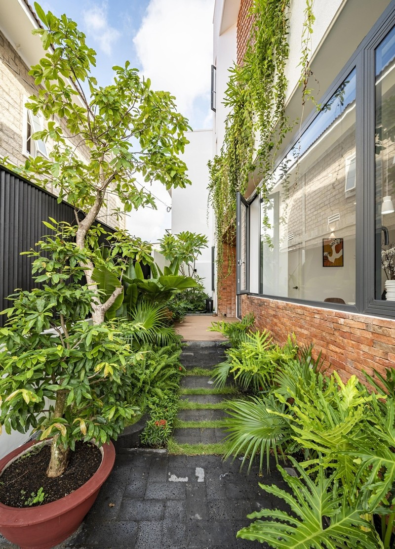 Với sở thích “nuôi cá trồng cây” của gia chủ, căn nhà được phủ lên mình nhiều mảng cây xanh từ kiến trúc bên ngoài đến hệ thống sân vườn nhỏ bên cạnh. Ảnh: Lilo Studio