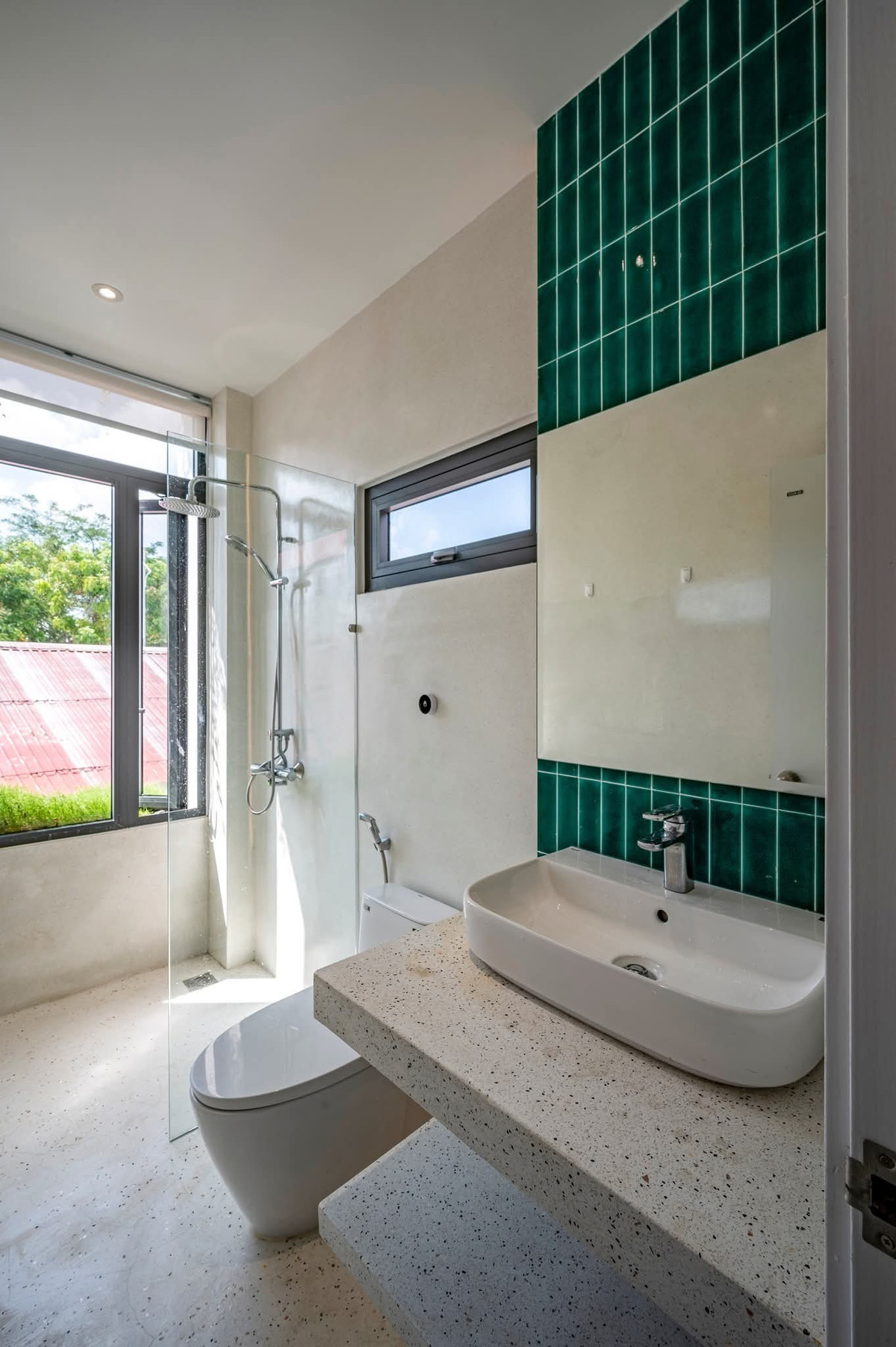 Phòng tắm sử dụng gam màu trắng chủ đạo. Ảnh: Lilo Studio