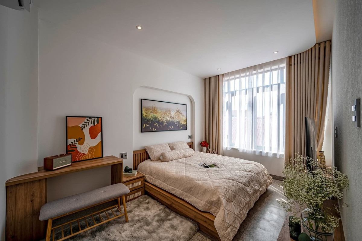 Phòng ngủ đơn giản, lấy ánh sáng tối đa. Ảnh: Lilo Studio