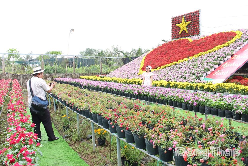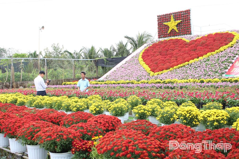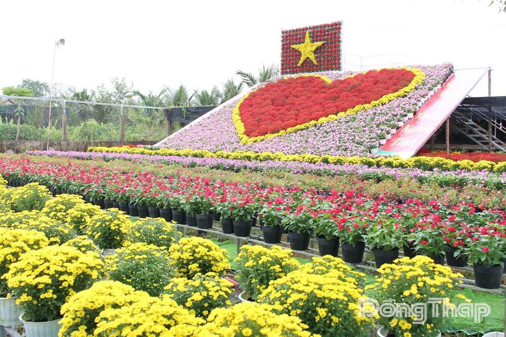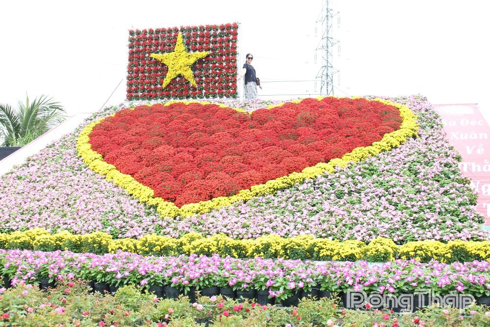 Tiểu cảnh “Trái tim” kết hợp cùng hình ảnh cờ đỏ sao vàng trở thành điểm nhấn của Festival Hoa - Kiểng Sa Đéc năm nay.