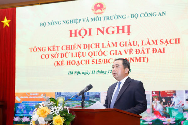 Phát biểu khai mạc hội nghị, Bộ trưởng bộ NN&MT Trần Đức Thắng nhấn mạnh, việc triển khai Kế hoạch số 515/KH-BCA_BNNMT (Kế hoạch 515) không chỉ là nhiệm vụ chuyên môn đơn thuần, mà còn là một mệnh lệnh từ thực tiễn, là nhiệm vụ chính trị trọng tâm nhằm hiện thực hóa Nghị quyết số 57 của Bộ Chính trị về chuyển đổi số quốc gia, cũng như Nghị quyết số 214 của Chính phủ về thúc đẩy tạo lập dữ liệu phục vụ chuyển đổi số toàn diện.
