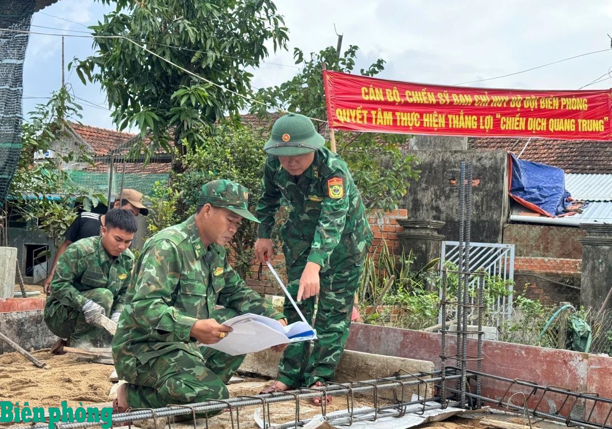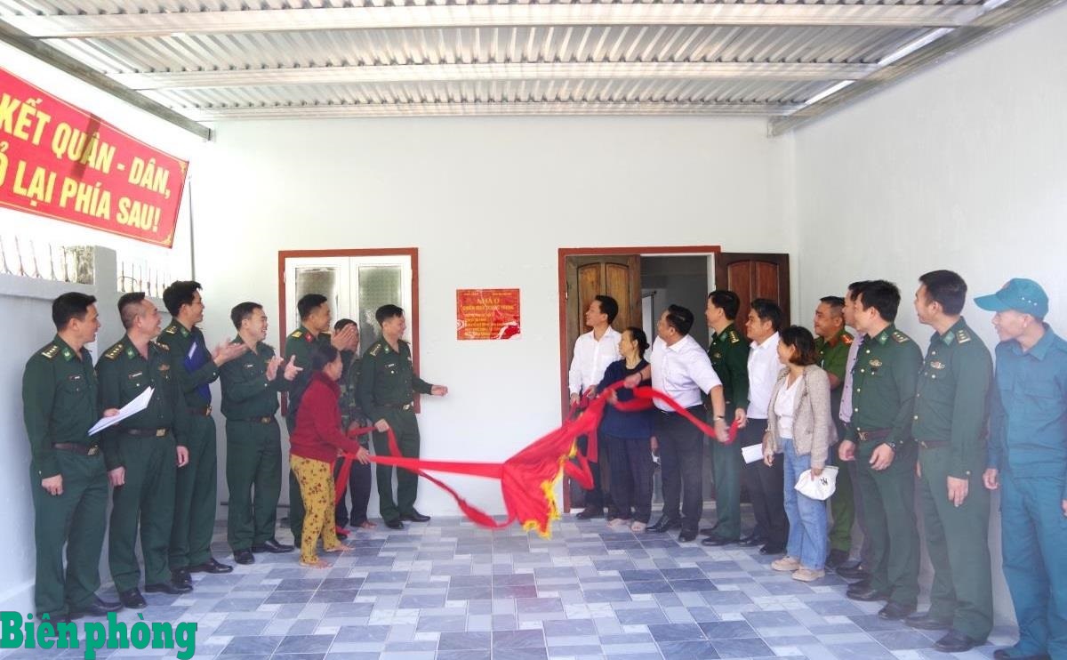 Cán bộ Bộ đội Biên phòng tỉnh Khánh Hòa cùng chính quyền địa phương bàn giao nhà cho hộ dân được hỗ trợ trong “Chiến dịch Quang Trung”. Ảnh: Văn Tân