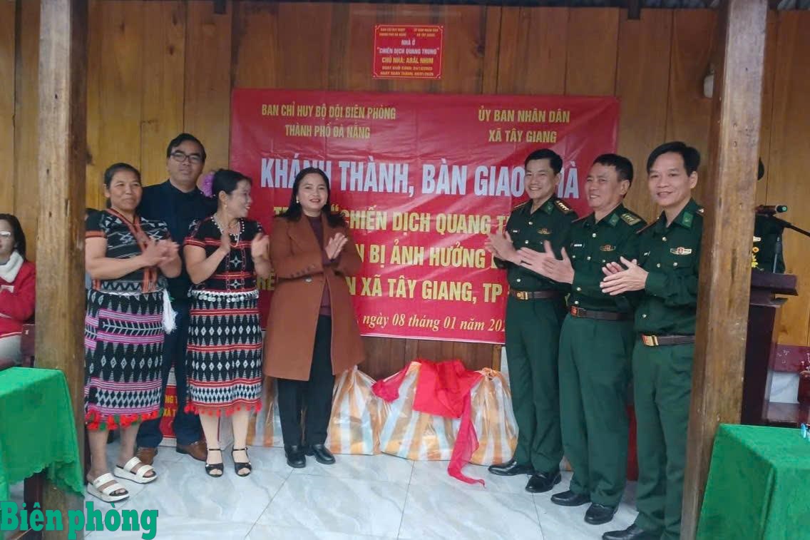 Lãnh đạo Bộ đội Biên phòng thành phố Đà Nẵng và lãnh đạo xã Tây Giang, thành phố Đà Nẵng bàn giao nhà cho người dân trên địa bàn. Ảnh: Trúc Hà