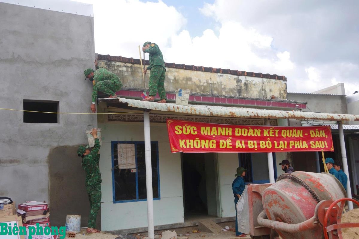 Không quản ngày nghỉ, giờ nghỉ, cán bộ, chiến sĩ Bộ đội Biên phòng tỉnh Lâm Đồng nỗ lực xây dựng nhà cho nhân dân. Ảnh: Văn Hoàn