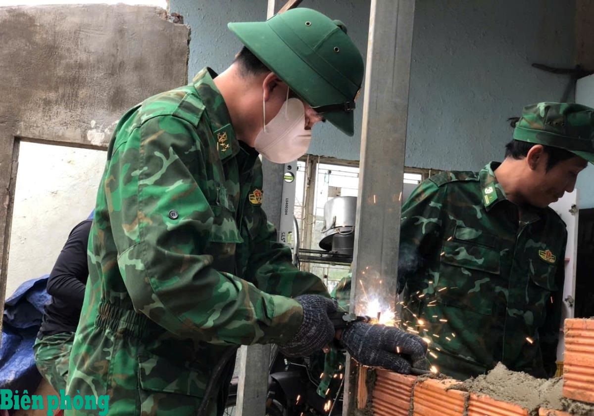 Bộ đội Biên phòng thành phố Đà Nẵng sửa chữa nhà cho người dân xã Tây Giang, thành phố Đà Nẵng. Ảnh: Trúc Hà