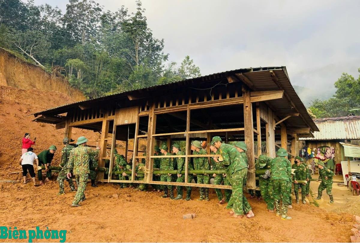 Cán bộ Bộ đội Biên phòng tỉnh Đắk Lắk chủ động, khẩn trương xây dựng nhà cho người dân sau lũ. Ảnh: Ngọc Lân