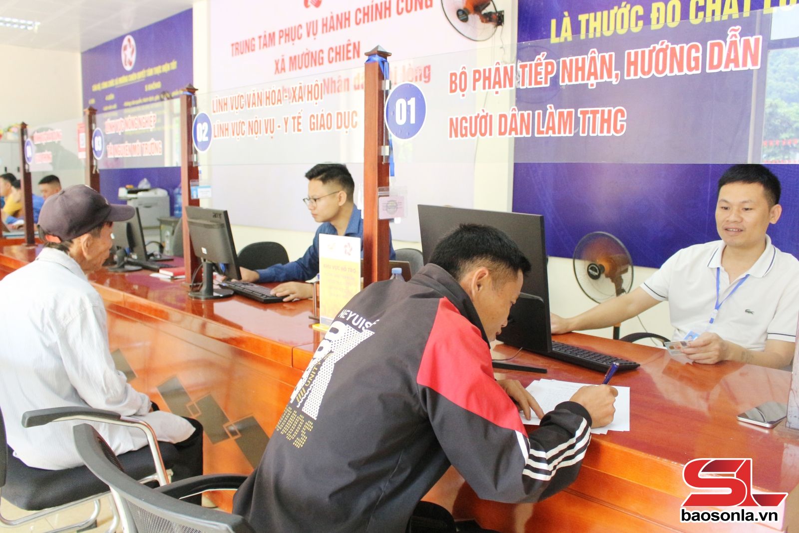 Cán bộ Trung tâm Phục vụ hành chính công xã Mường Chiên hướng dẫn nhân dân làm thủ tục đất đai.