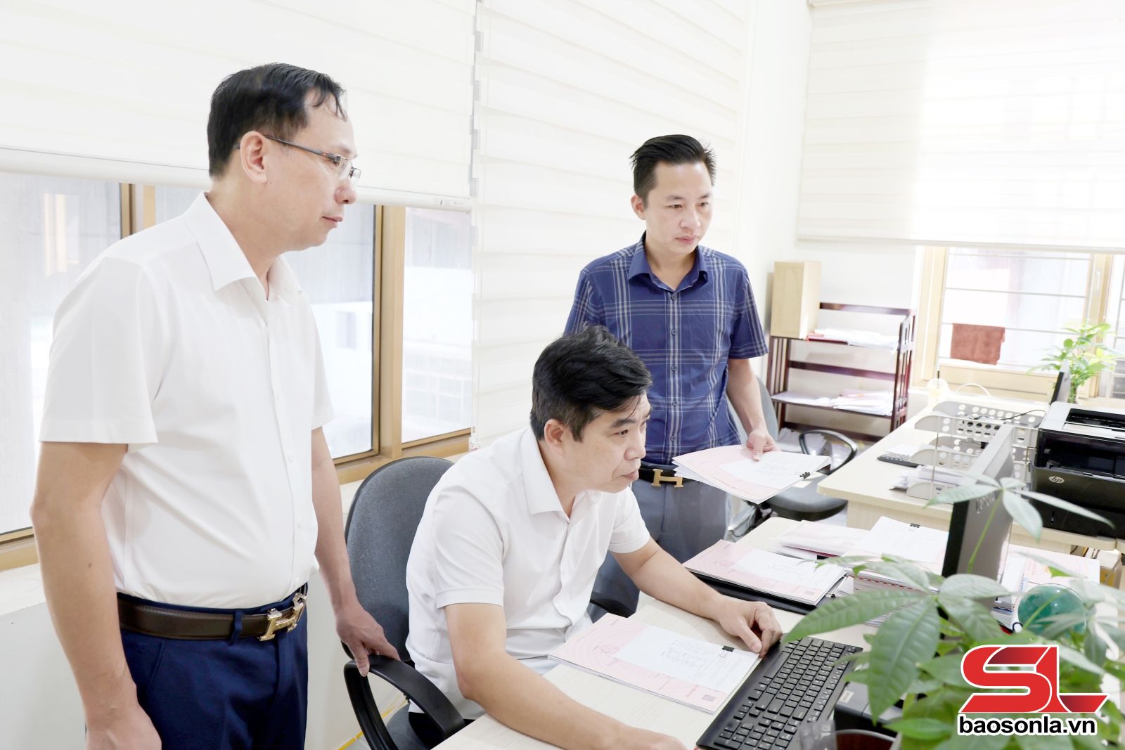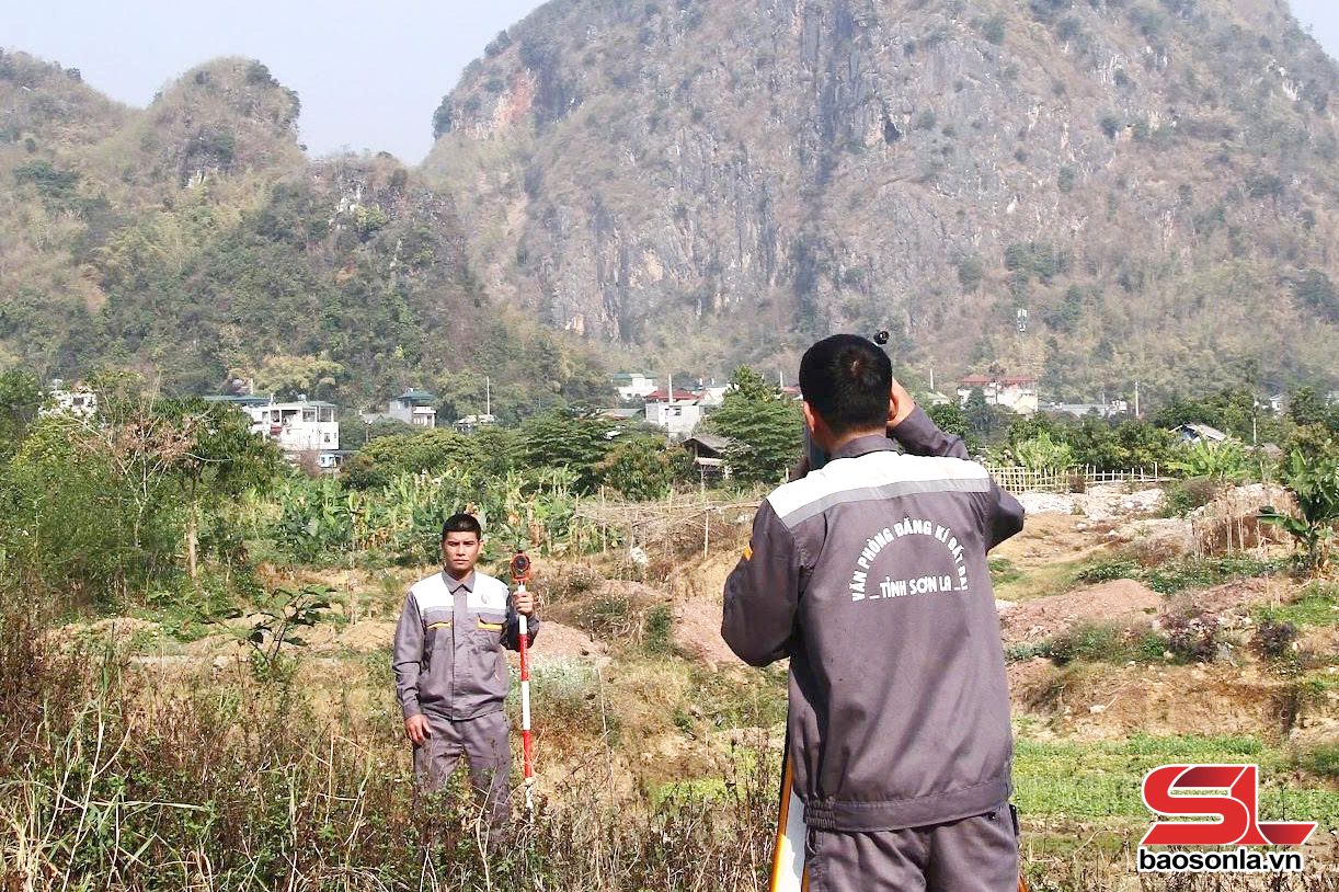 Cán bộ Văn phòng Đăng ký đất đai thực hiện đo đạc, xây dựng CSDL trên địa bàn phường Chiềng An.