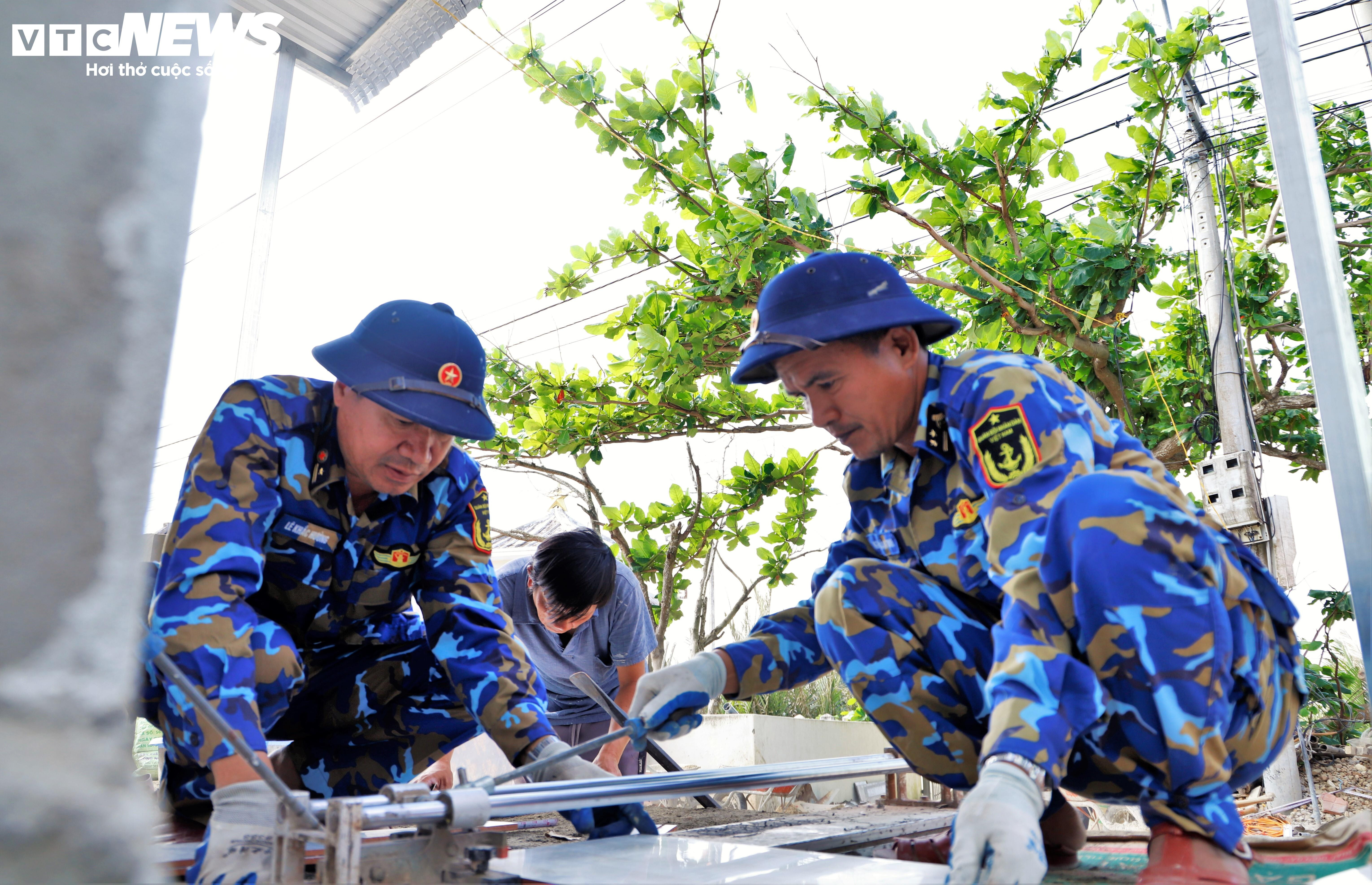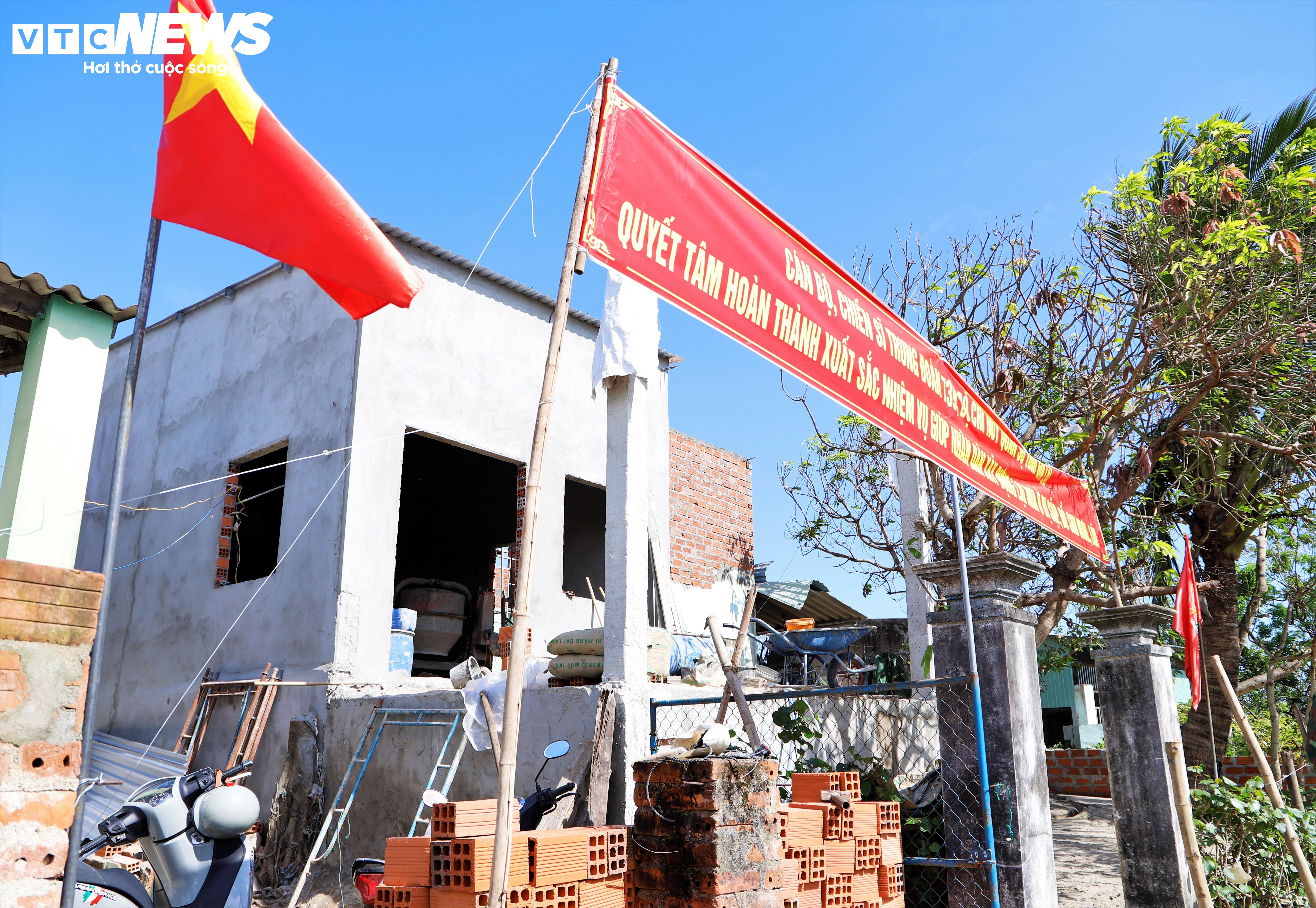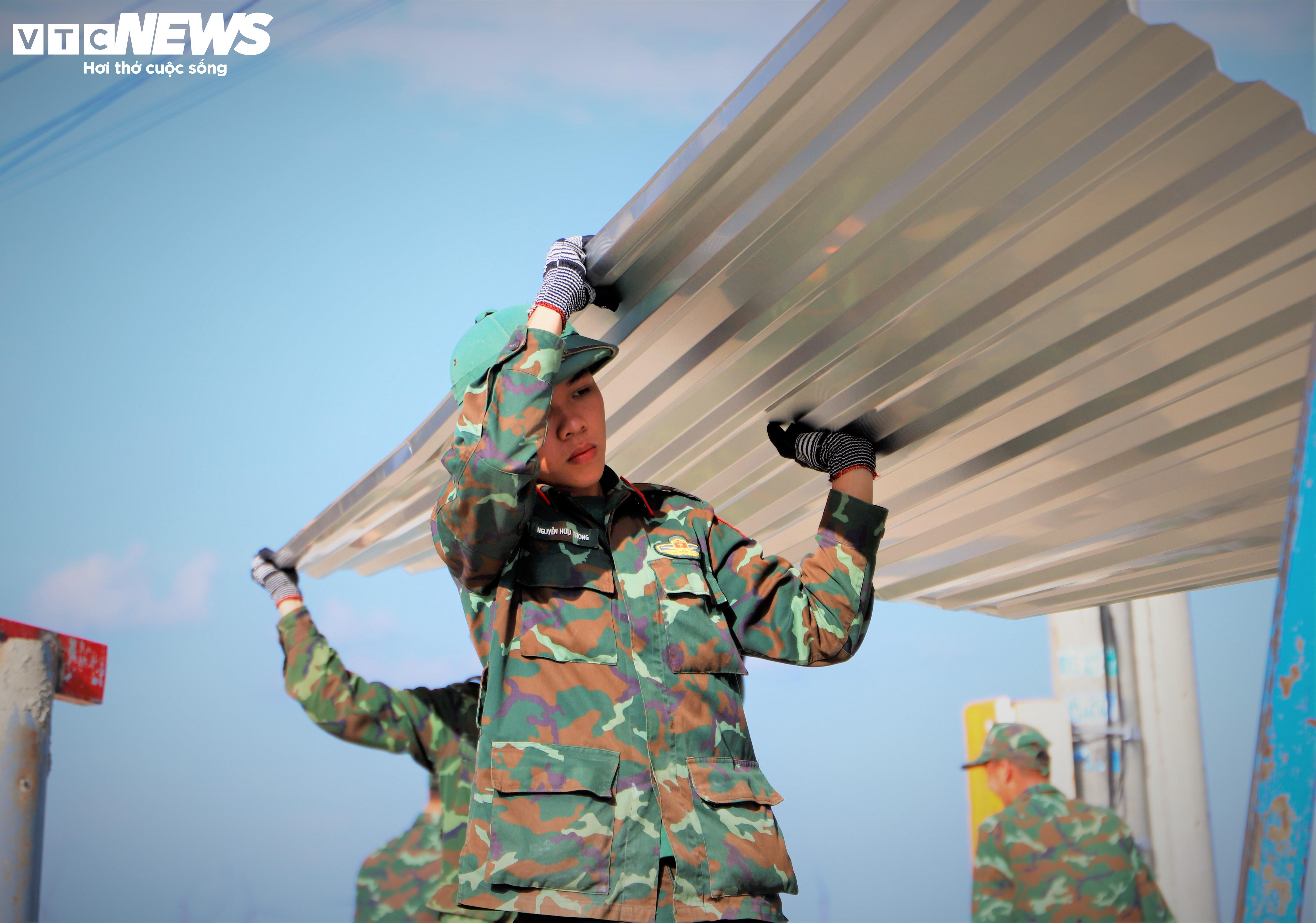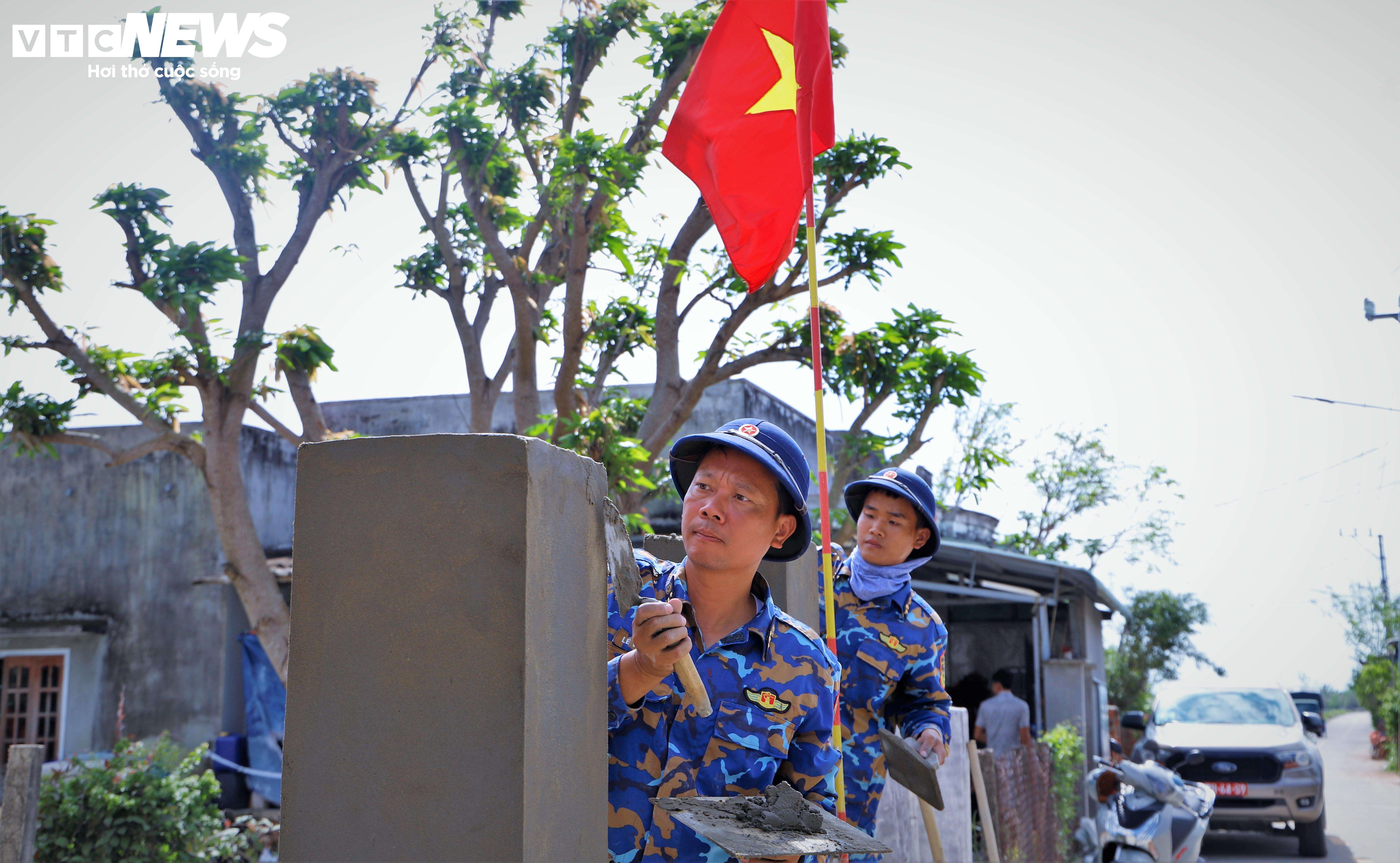 Dưới lá cờ tổ quốc và những tấm băng rôn rực đỏ, cán bộ, chiến sỹ đến từ các Trung đoàn 351, Tiểu đoàn 355 (Vùng 3 Hải quân); Trung đoàn 739 ( Bộ CHQS tỉnh Gia Lai), Tiểu đoàn 7 (Bộ Tham mưu, Quân đoàn 34)...thoăn thoắt tay bay, tay xẻng hoàn thành các công đoạn cuối của ngôi nhà mới.