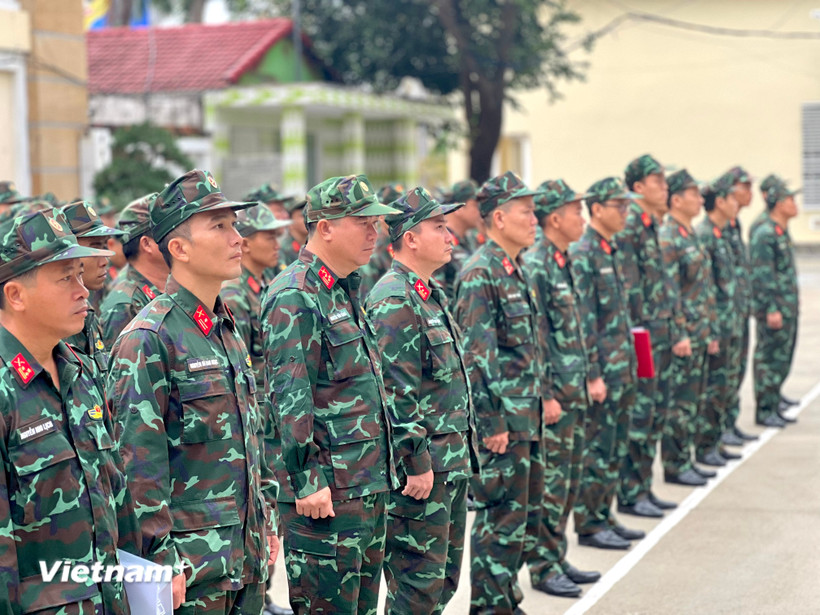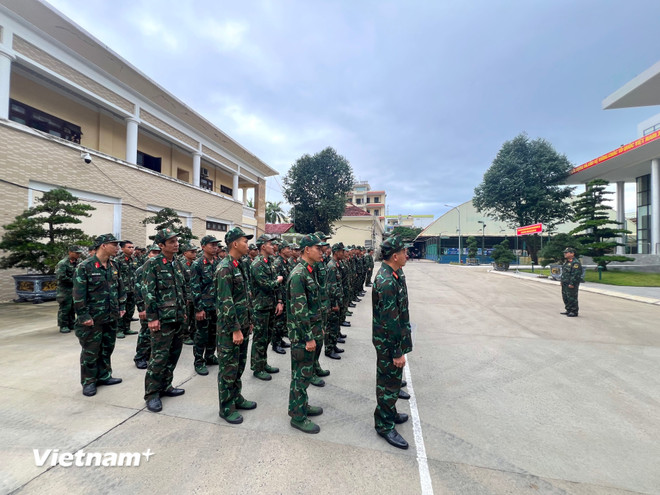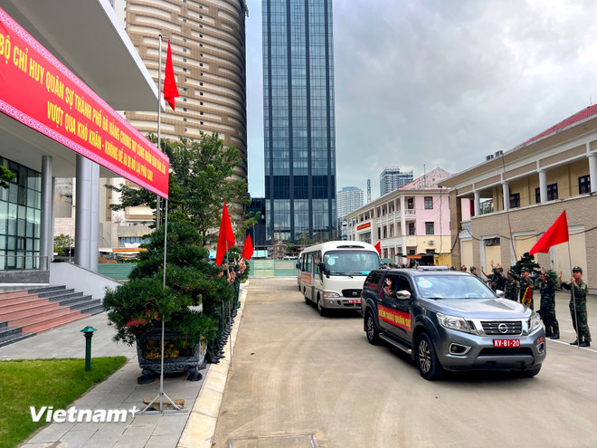 Cán bộ, chiến sỹ Bộ Chỉ huy quân sự Đà Nẵng lên đường thực hiện nhiệm vụ. (Ảnh: Thanh Phong/Vietnam+)