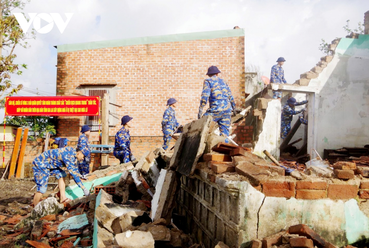 PV: Mặc dù nhiều khó khăn, thách thức, song chỉ 35 ngày đêm, cán bộ chiến sĩ Vùng 3 Hải quân đã xây mới 6 căn nhà cho người dân và đều vượt kế hoạch đề ra. Trước yêu cầu đẩy nhanh tiến độ của Chiến dịch Quang Trung, Vùng đã có những biện pháp, cách làm sáng tạo nào để khắc phục khó khăn, bảo đảm chất lượng và tiến độ công trình, thưa Đại tá Đoàn Bảo Anh?