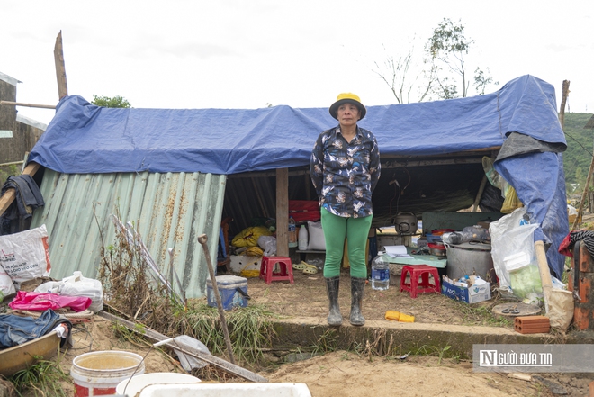 Đã hơn 1 tuần kể từ khi trận lũ lịch sử quét qua, bà Tôn Thị Định (41 tuổi) vẫn chưa hết bàng hoàng, xót xa khi nhắc về căn nhà của mình. Nhà bà Định bị sập hoàn toàn trong đêm lũ dâng cao. Trong căn chòi nhỏ dựng tạm trên đất hàng xóm, bà vẫn thoăn thoắt lo bữa cơm chiều cho chồng con, bà kể, hai vợ chồng dành dụm lâu mới xây được căn nhà. Đêm đó nước lũ dâng lên, bà cùng chồng đưa đàn bò vào nhà rồi cùng chồng kê đồ đạc.